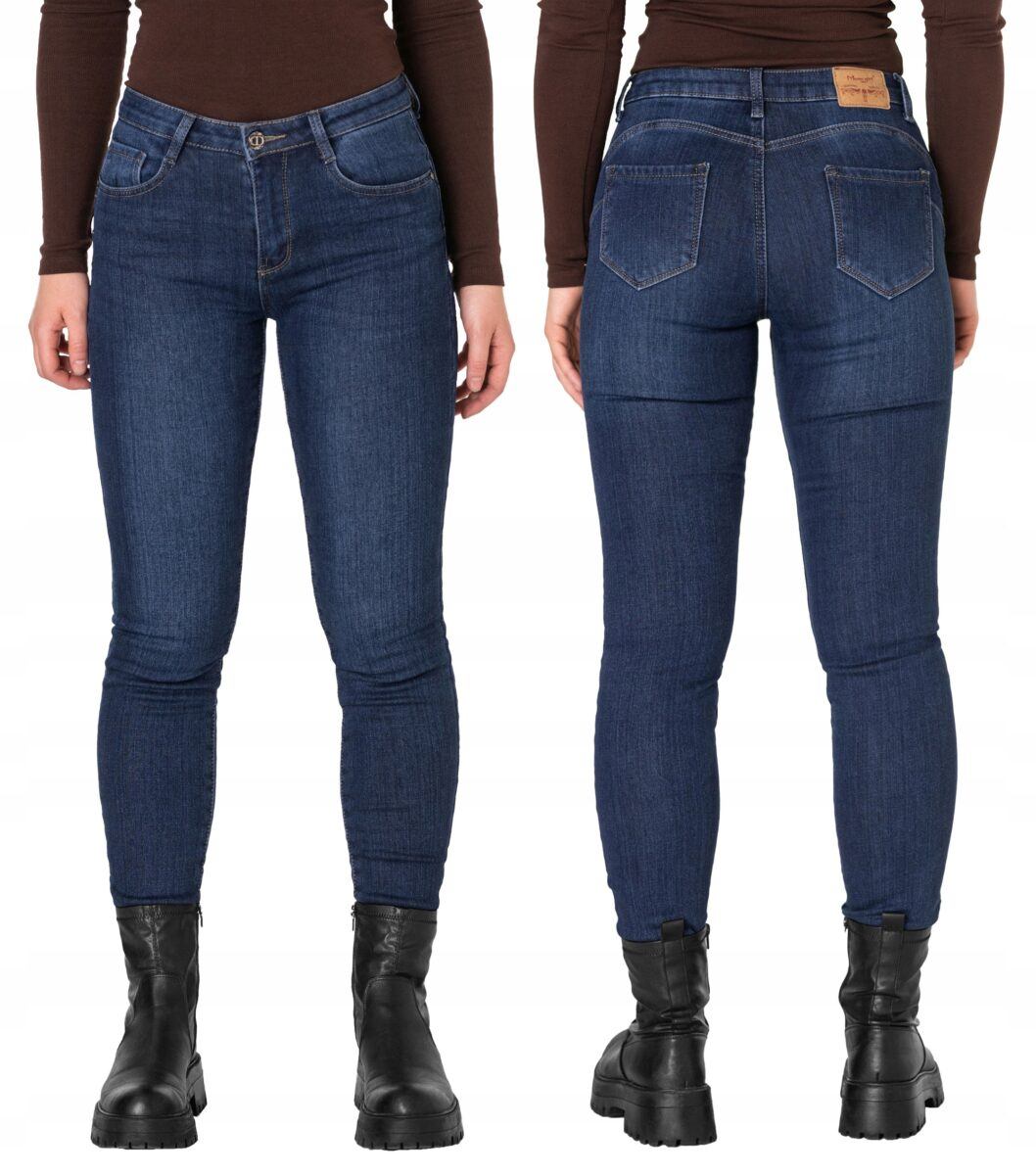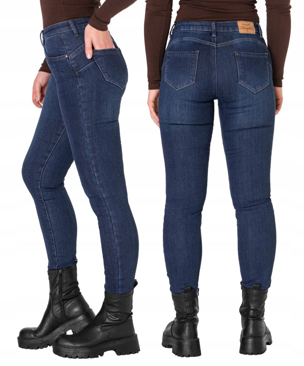 Ciepłe Spodnie Damskie Jeansy Granatowe Ocieplone Polarem