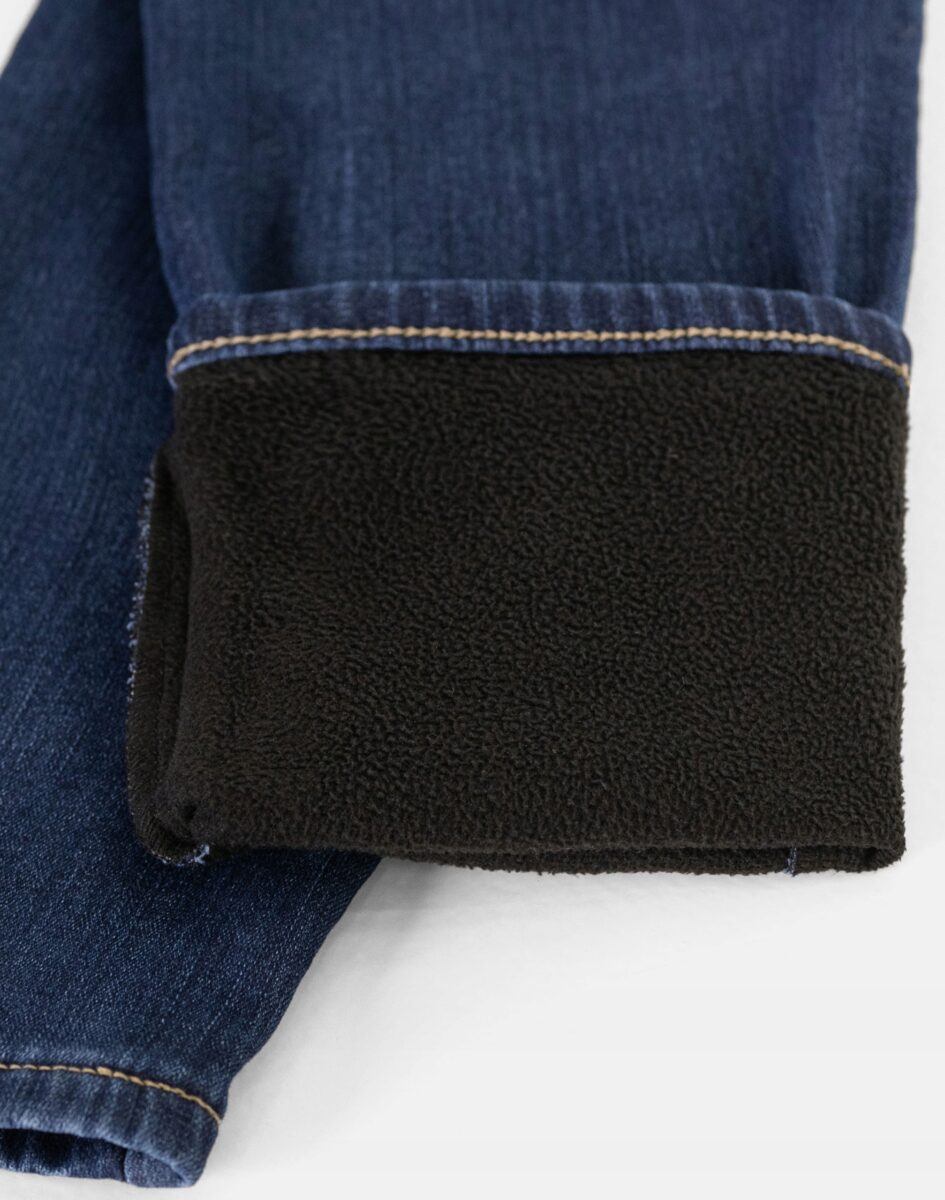 - Struktura/rodzaj materiału: Denim Jeans z dodatkiem streczu ocieplony od wewnętrznej strony polarem, gładki, elastyczny, matowy