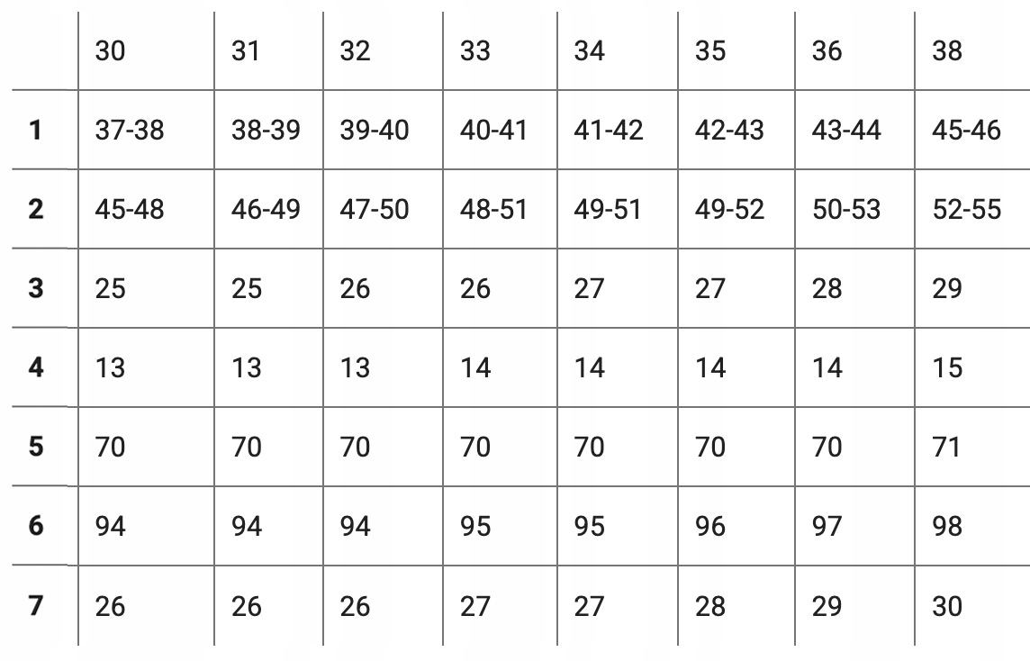 Obwód pasa: 80-82 cm (Sprawdź pozostałe wymiary w tabeli)