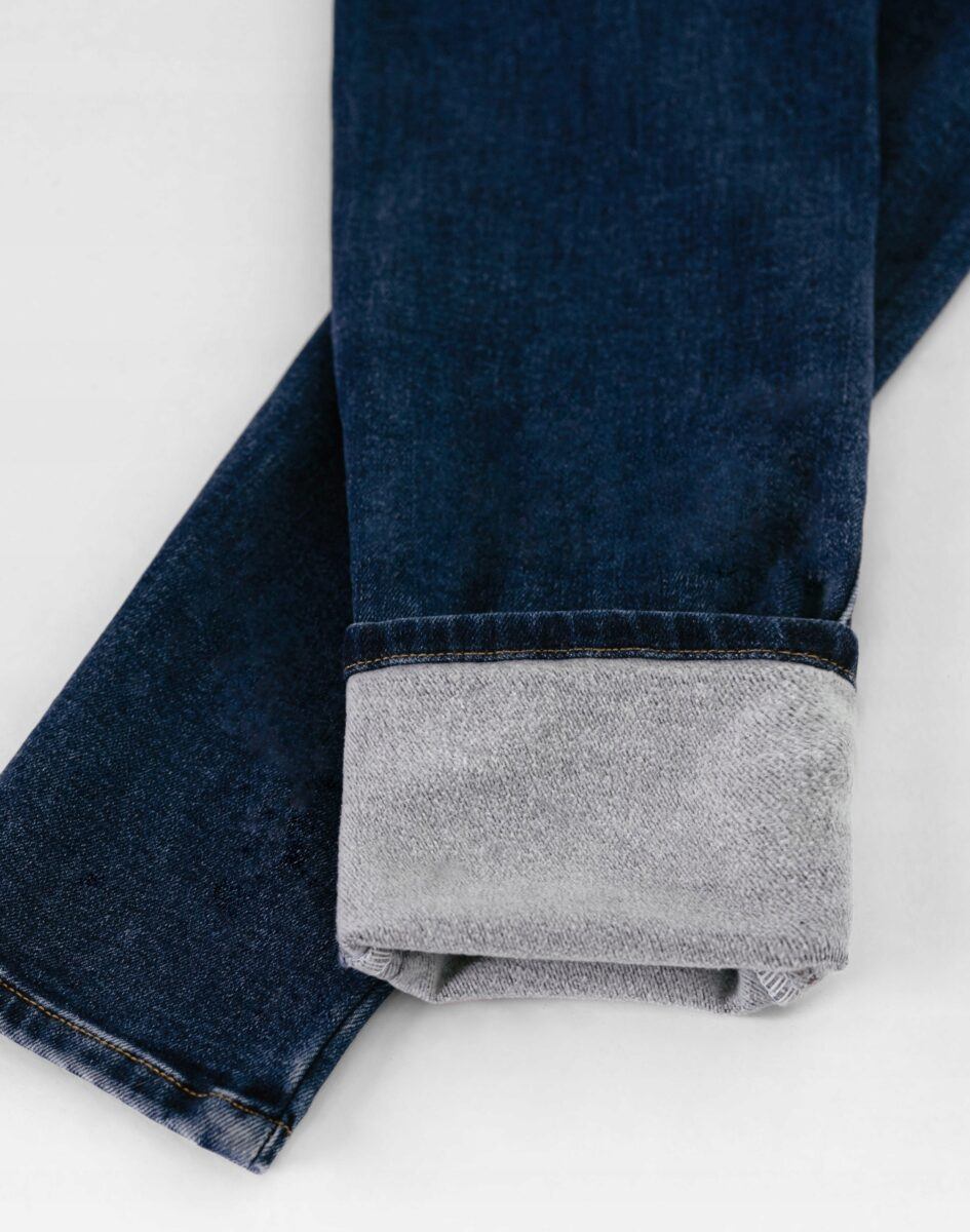 - Struktura/rodzaj materiału: Ciepły, Denim Jeans lekko ocieplony od wewnętrznej strony mikropolarem, elastyczny, gładki, matowy