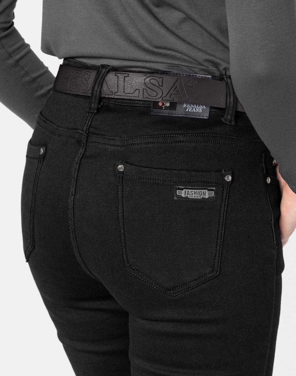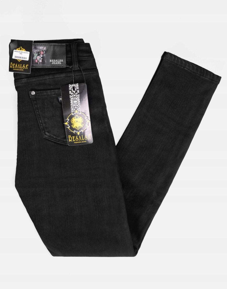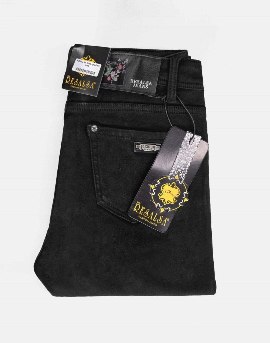Ciepłe Jeansy damskie model 2063 to klasyczne, bardzo szykowne rurki w kolorze czarnym „Super Black”, ocieplone od wewnętrznej strony mikropolarem, z wąskimi nogawkami o wyszczuplającym optycznie kobiecą sylwetkę fasonie i wyższym stanie. Zapinane są na kryty zamek błyskawiczny i metalowy guzik sygnowany logiem firmy. Z przodu mają dwie kieszonki zaokrąglone oraz mniejszą kieszonkę tzw. bilonówkę, a na tyle klasyczne kieszenie naszywane jak w typowych spodniach jeansowych. W pasie szlufki umożliwiające stylizacje z paskiem. Najbardziej podatne na uszkodzenia miejsca wzmocnione są dodatkowymi przeszyciami oraz ozdobnymi nitami. Uszyte z mocnego jeansu z niewielkim dodatkiem lycry (elastan) dzięki czemu spodnie są bardziej elastyczne co pozwala na pełną swobodę ruchów, daje komfort przy siadaniu i zapewnia ogromny komfort noszenia.