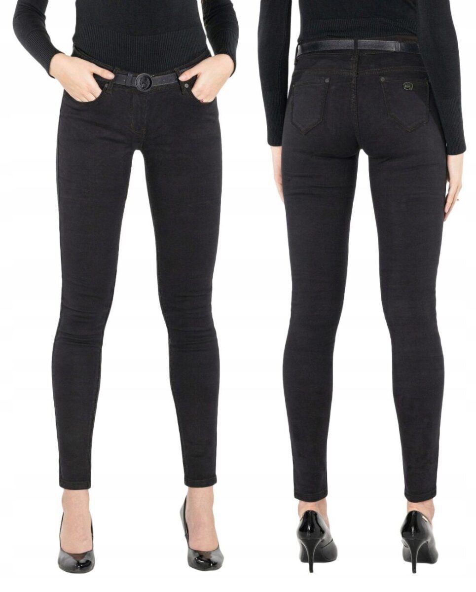 Ocieplone Polarem Czarne Spodnie Jeansy Damskie ze Streczem + Firmowy Pasek Gratis !