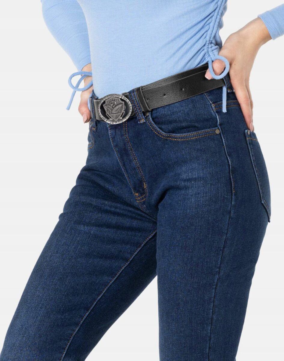 W komplecie ze spodniami oferujemy stylowy paseczek, który z jednej strony zapewnia lepsze dopasowanie spodni do sylwetki, a z drugiej jest detalem który dodaje całości elegancji i jest kropką nad „i” udanej stylizacji.