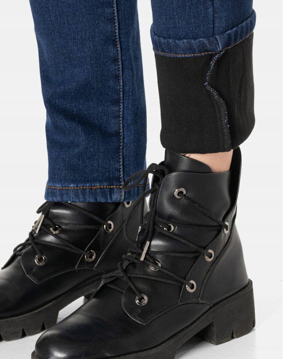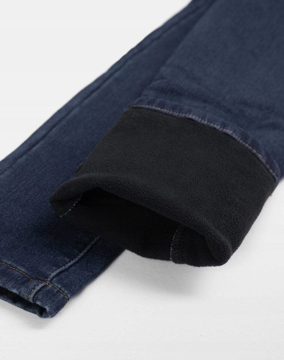 - Struktura/rodzaj materiału: Gruby, ciepły, Denim Jeans ocieplony od wewnętrznej strony polarem, elastyczny, gładki, matowy