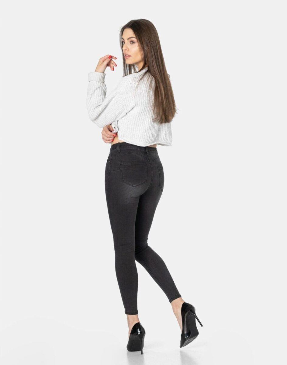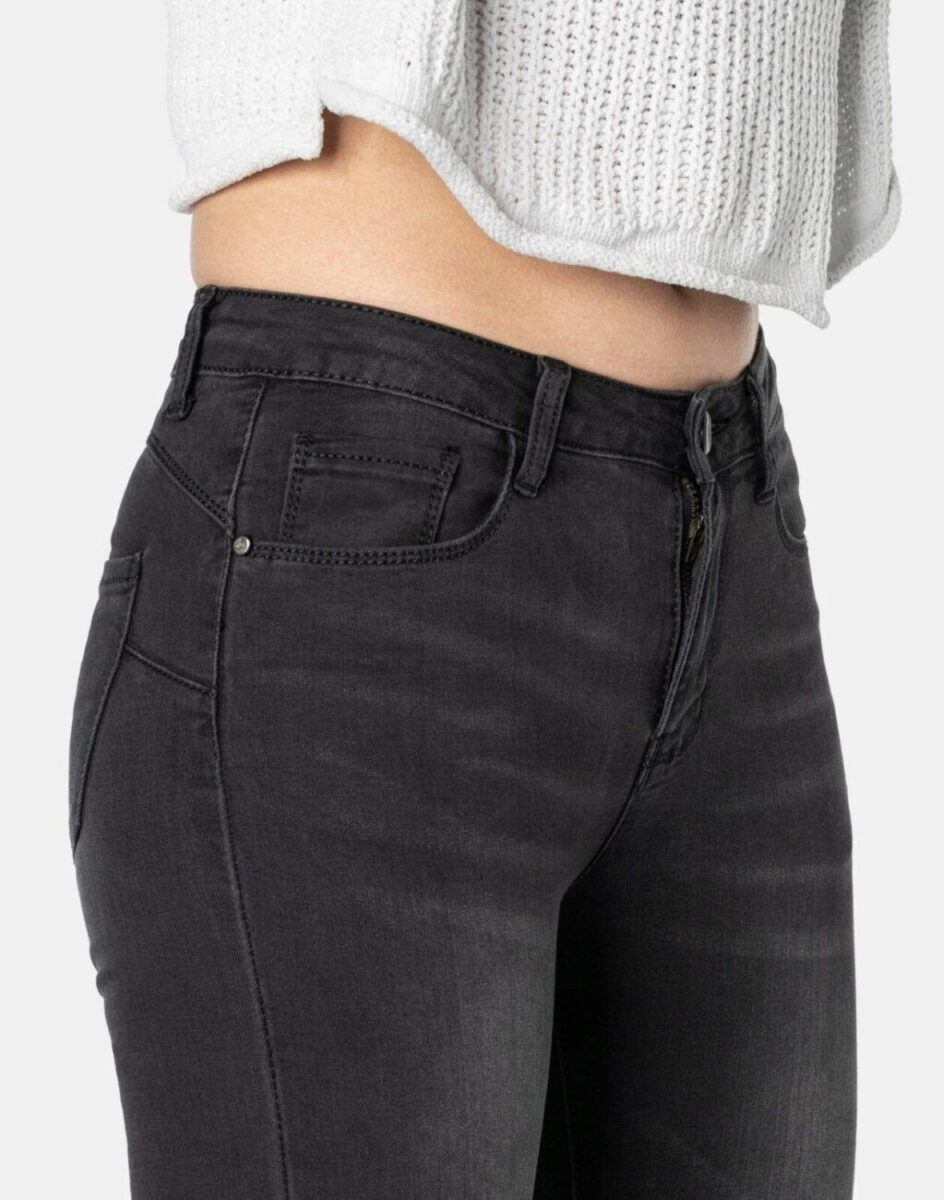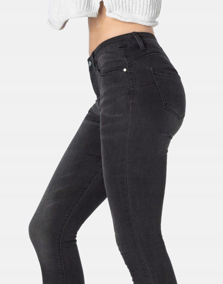 Oferowane przez nas spodnie uszyte są z wysokiej jakości tkaniny jeansowej „Black Denim” z domieszką lycry (elastan), dzięki czemu spodnie są bardziej elastyczne, mocno przylegają do ciała a nogi wydają się się optycznie dłuższe. Pozwalają na pełną swobodę ruchów, co daje komfort przy siadaniu i zapewnia ogromny komfort noszenia. Możesz je śmiało łączyć zarówno ze szpilkami (idealnie wydłużają kobiece nogi), jak i obuwiem sportowym. Zapewniają poczucie atrakcyjności przy jednoczesnym zachowaniu wygody i pełnej swobody ruchów. Zawsze modny krój Slim Fit z wąską dopasowaną nogawką pozwoli Ci założyć je na wiele różnych okazji. Sprawdzony przez wiele zadowolonych klientek fason spodni sprawi, że w zależności od dopasowanego do nich elementu garderoby, będziesz zawsze odpowiednio ubrana na każdą okazję, zarówno na „sportowo” jak i na „elegancko”.