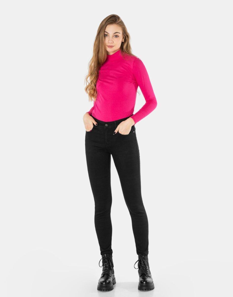 - Struktura/rodzaj materiału: Black Denim z dodatkiem streczu, miękki, matowy, elastyczny, gładki