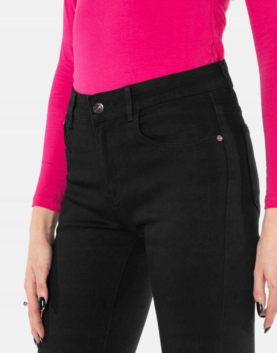 Oferowane przez nas spodnie uszyte są z wysokiej jakości tkaniny jeansowej „Black Denim” z domieszką spandexu (elastanu), dzięki czemu spodnie są bardziej elastyczne, mocno przylegają do ciała, a nogi wydają się optycznie dłuższe. Pozwalają na pełną swobodę ruchów, co daje komfort przy siadaniu i zapewnia ogromny komfort noszenia. Modny i sprawdzony krój spodni sprawi, że w zależności od dopasowanego do nich elementu garderoby stworzysz wiele udanych stylizacji, w których będziesz czuła się wygodnie i swobodnie. Możesz je śmiało łączyć zarówno z eleganckimi szpilkami (idealnie wydłużają kobiece nogi), lub w wersji bardziej „na luzie” z balerinami lub czółenkami na wysokim obcasie, a Twoja stylizacja nabierze wyjątkowego charakteru. Zapewniają poczucie atrakcyjności przy jednoczesnym zachowaniu wygody i pełnej swobody ruchów. Sprawdzony przez wiele zadowolonych klientek fason spodni z wąską dopasowaną nogawką pozwoli Ci założyć je na wiele różnych okazji, a miłośniczki jeansów jednogłośnie twierdzą, że w trakcie ich noszenia pewność siebie szybuje bardzo wysoko.
