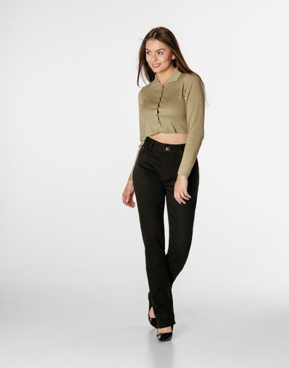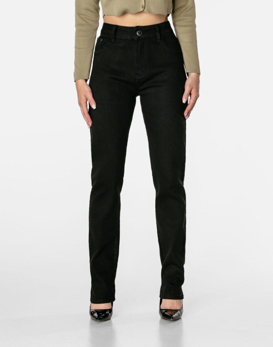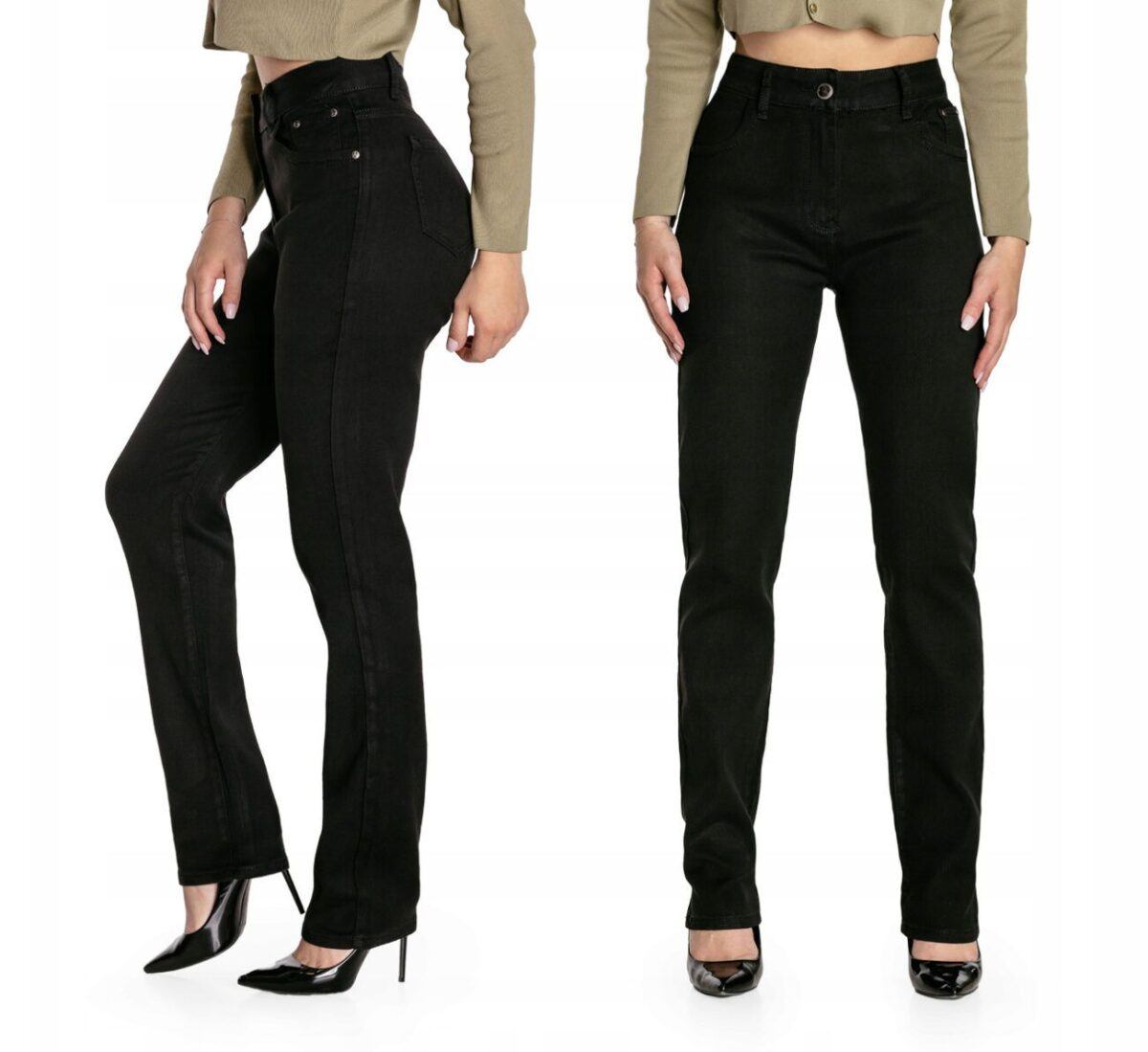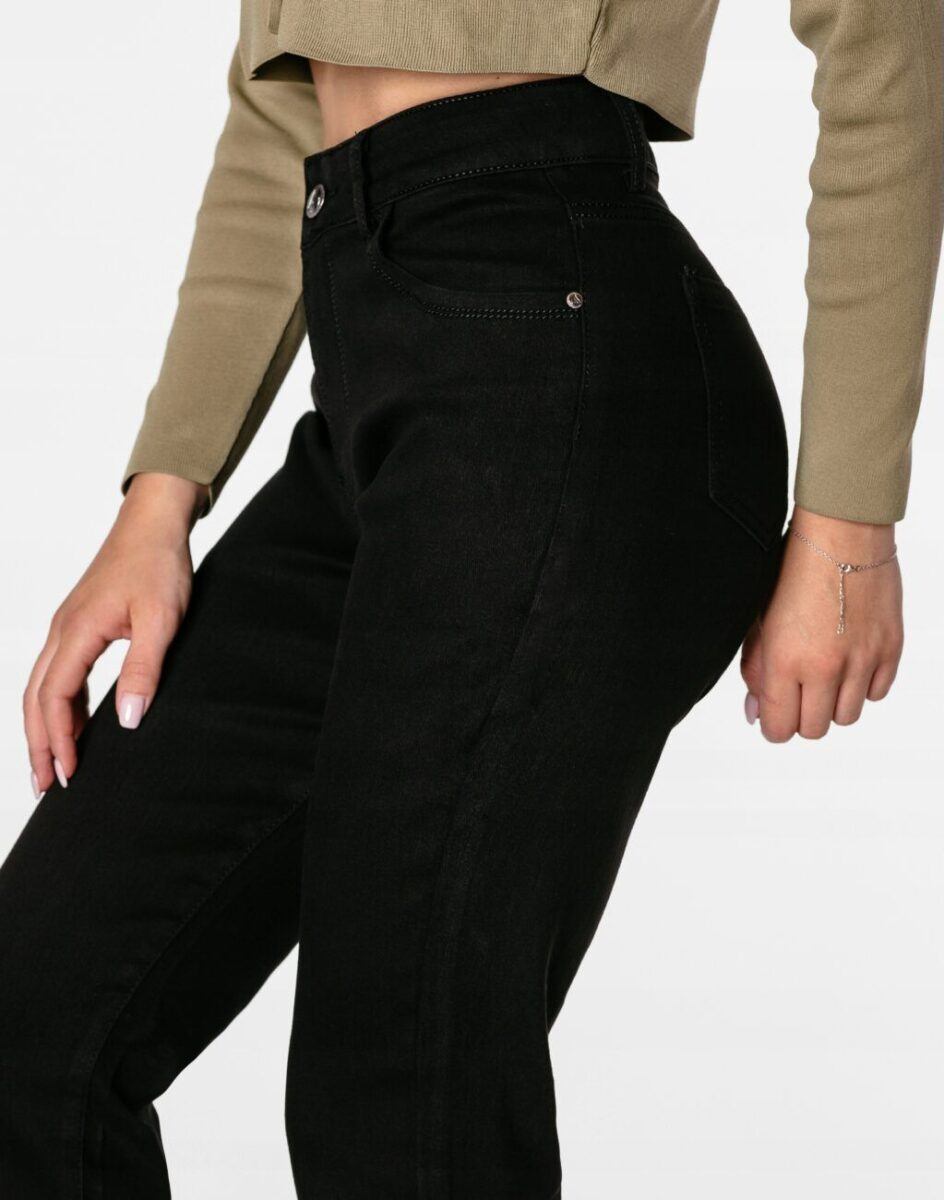 Klasyczne Czarne Jeansy Damskie z Wyższym Stanem i Prostą Nogawką Regular Fit