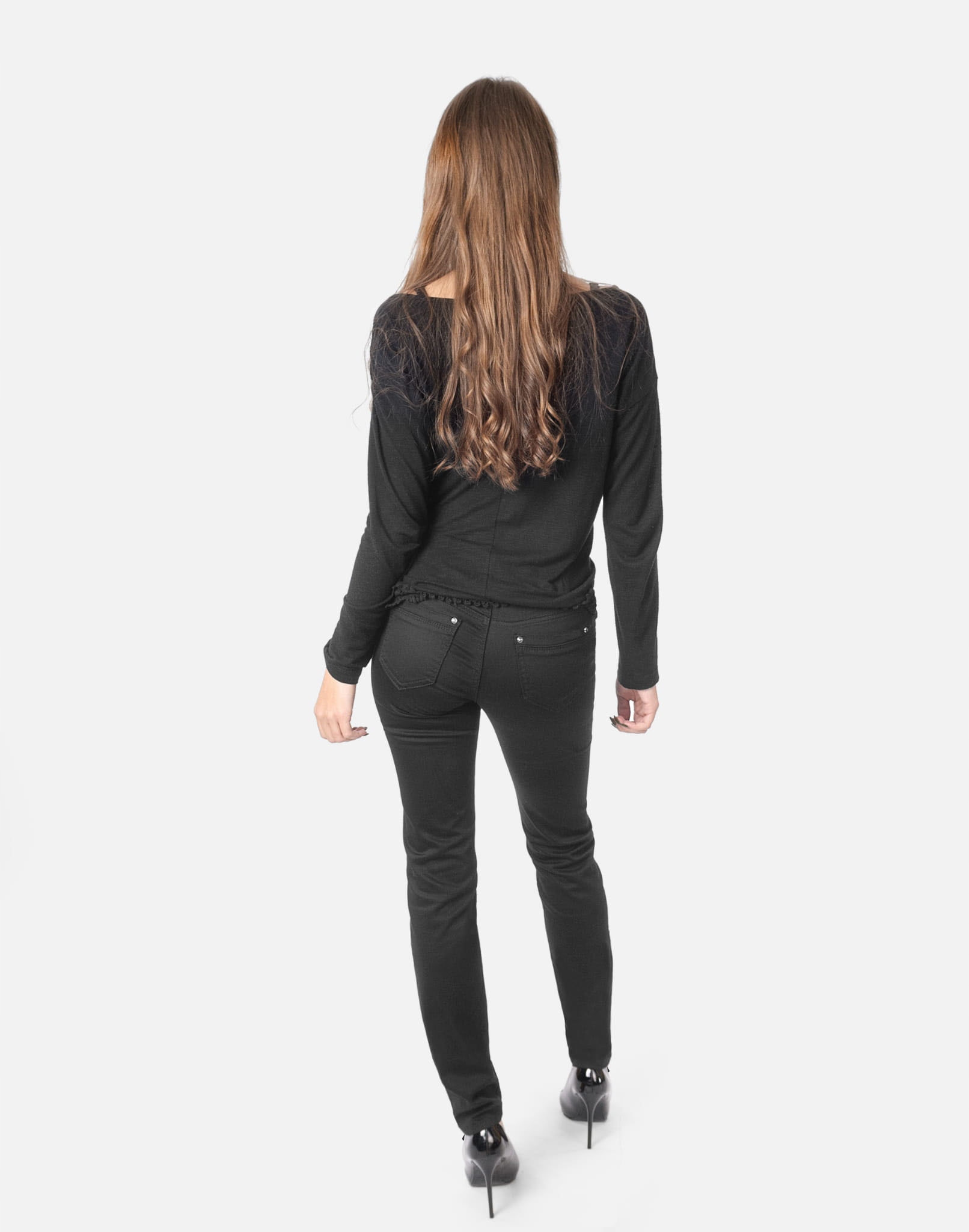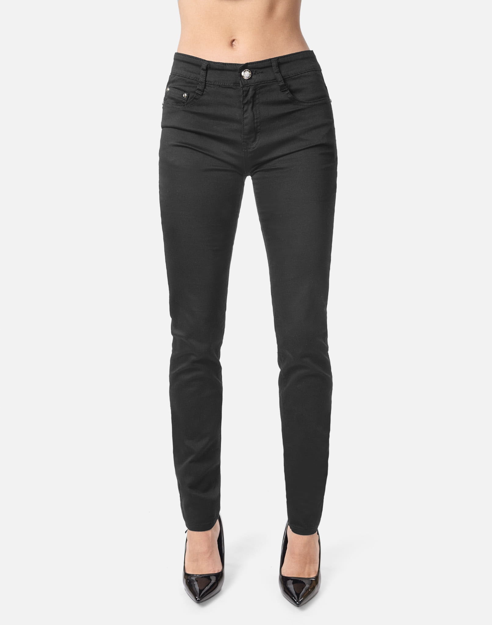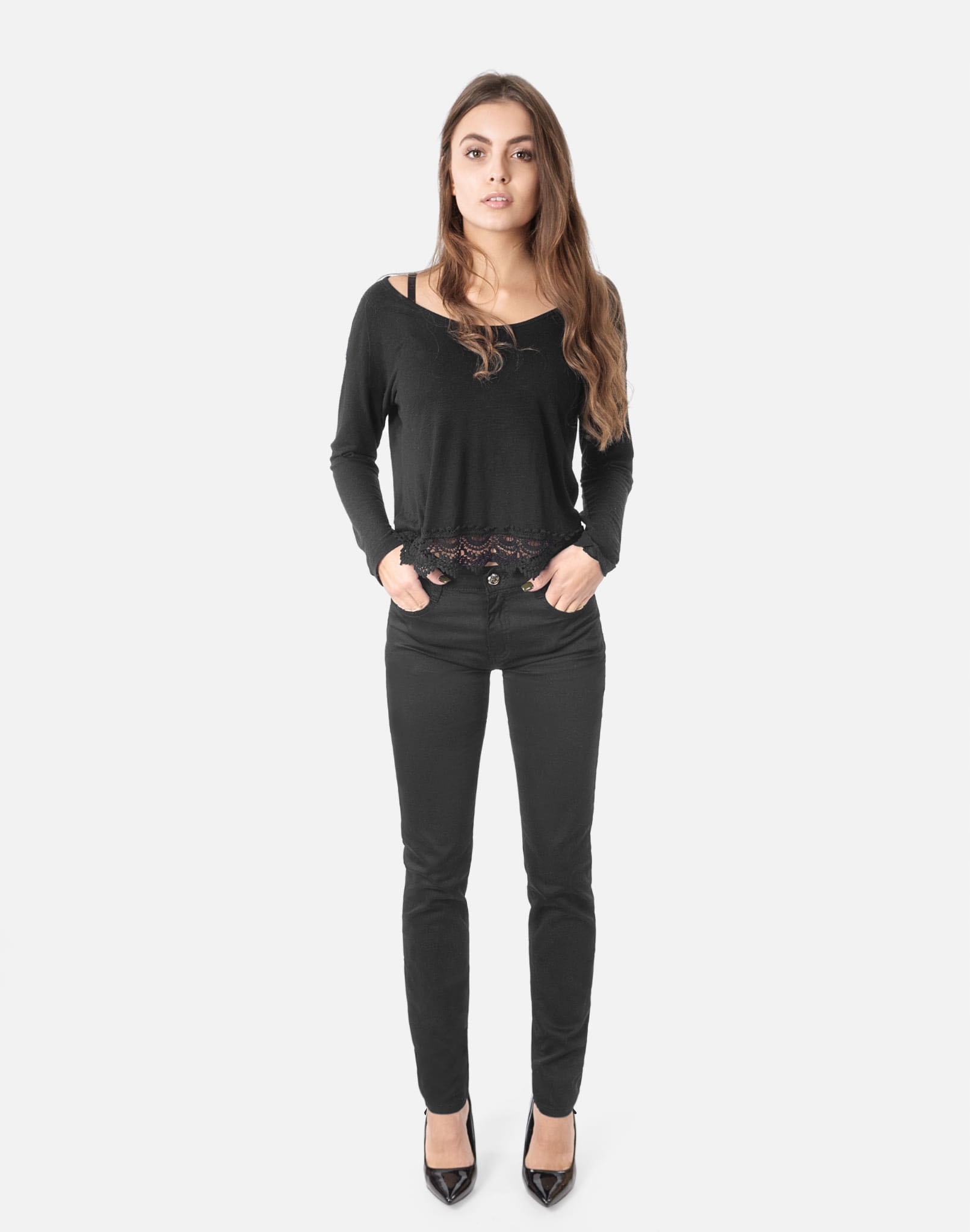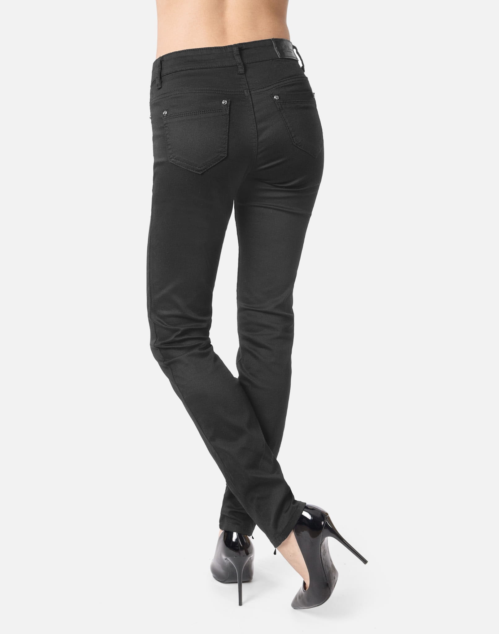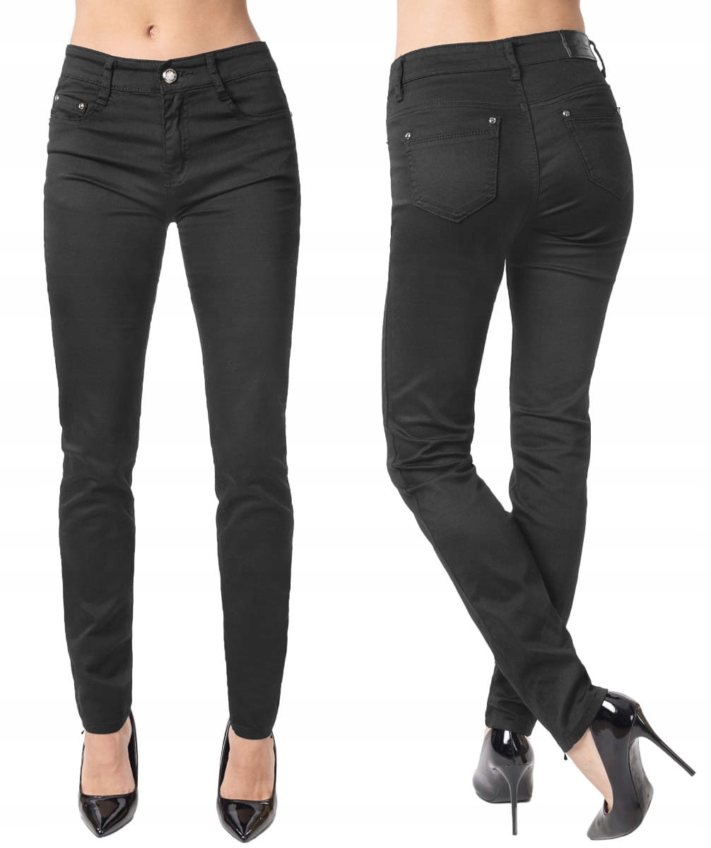 Oferowane przez nas spodnie uszyte są z wysokiej jakości tkaniny jeansowej typu "Black Denim" z domieszką lycry (elastan), która odznacza się wysoką elastycznością co gwarantuje doskonałe dopasowanie do każdej figury i że spodnie nie będą się deformować i odkształcać nawet po długim użytkowaniu. Świetnie przylegają do ciała a jednocześnie pozwalają na pełną swobodę ruchów co daje komfort przy siadaniu i zapewnia ogromny komfort noszenia. Możesz je śmiało łączyć zarówno ze szpilkami (idealnie wydłużają kobiece nogi), jak i obuwiem sportowym. Dobrze wyglądają również z rozsuniętymi lub podwiniętymi nogawkami. Niepozorne podwinięcie nogawek spodni nadaje stylizacjom ciekawej nonszalancji i zadziorności.