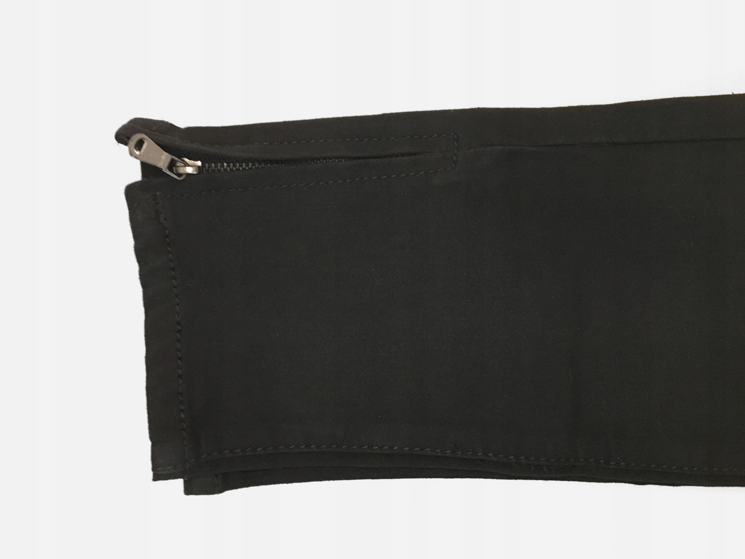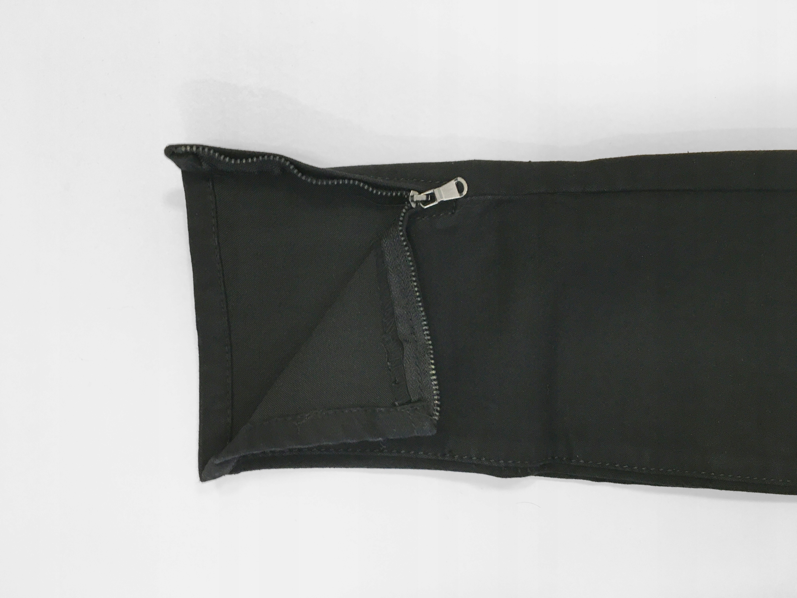 - Doły nogawek wykończone krytymi rozsuwanymi zameczkami
