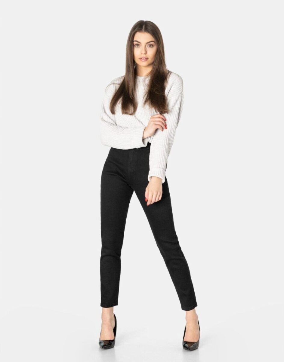 - Struktura/rodzaj materiału: Black Denim z dodatkiem streczu, miękki, matowy, elastyczny, gładki
