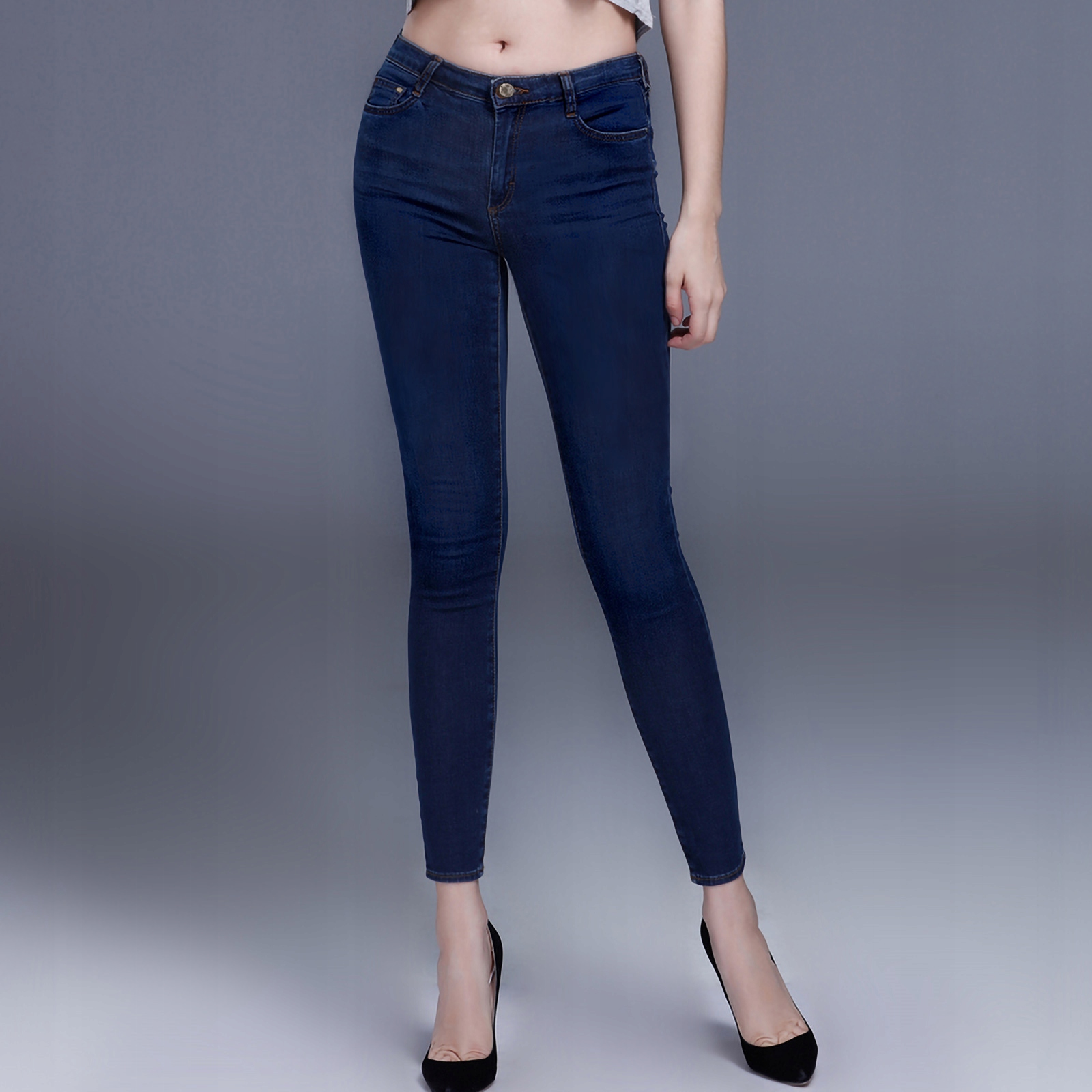 Oferowane przez nas spodnie uszyte są z wysokiej jakości tkaniny jeansowej "Dark Blue Denim" z domieszką spandexu (lycra), dzięki czemu spodnie są bardziej elastyczne, ładnie przylegają do ciała, a nogi wydają się optycznie dłuższe. Pozwalają na pełną swobodę ruchów, co daje komfort przy siadaniu i zapewnia ogromny komfort noszenia. Modny i sprawdzony krój spodni sprawi, że w zależności od dopasowanego do nich elementu garderoby stworzysz wiele udanych stylizacji, w których będziesz czuła się wygodnie i swobodnie. Możesz je śmiało łączyć zarówno z eleganckimi szpilkami (idealnie wydłużają kobiece nogi), lub w wersji bardziej "na luzie" z balerinami lub czółenkami na wysokim obcasie, a Twoja stylizacja nabierze wyjątkowego charakteru. Zapewniają poczucie atrakcyjności przy jednoczesnym zachowaniu wygody i pełnej swobody ruchów. Sprawdzony przez wiele zadowolonych klientek fason spodni z wąską dopasowaną nogawką pozwoli Ci założyć je na wiele różnych okazji, a miłośniczki jeansów jednogłośnie twierdzą, że w trakcie ich noszenia pewność siebie szybuje bardzo wysoko.