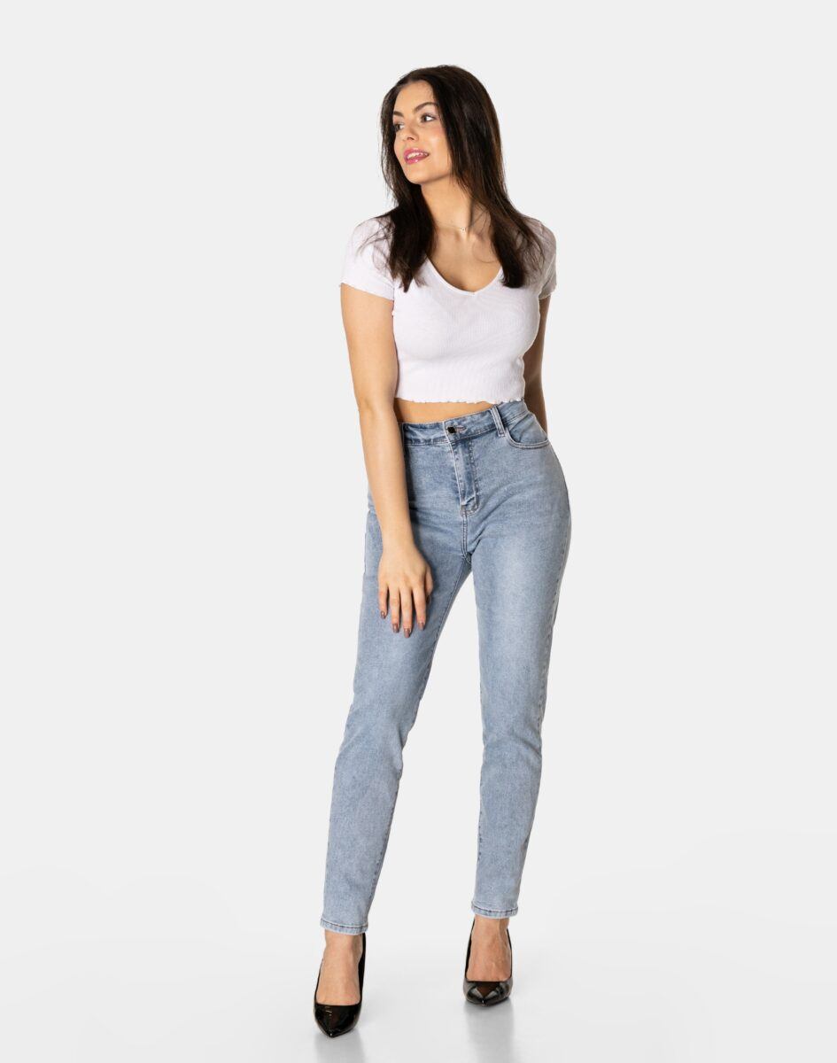 Klasyczne Spodnie Jeansy Damskie z Wyższym Stanem „Mom Jeans – Relaxed Fit”