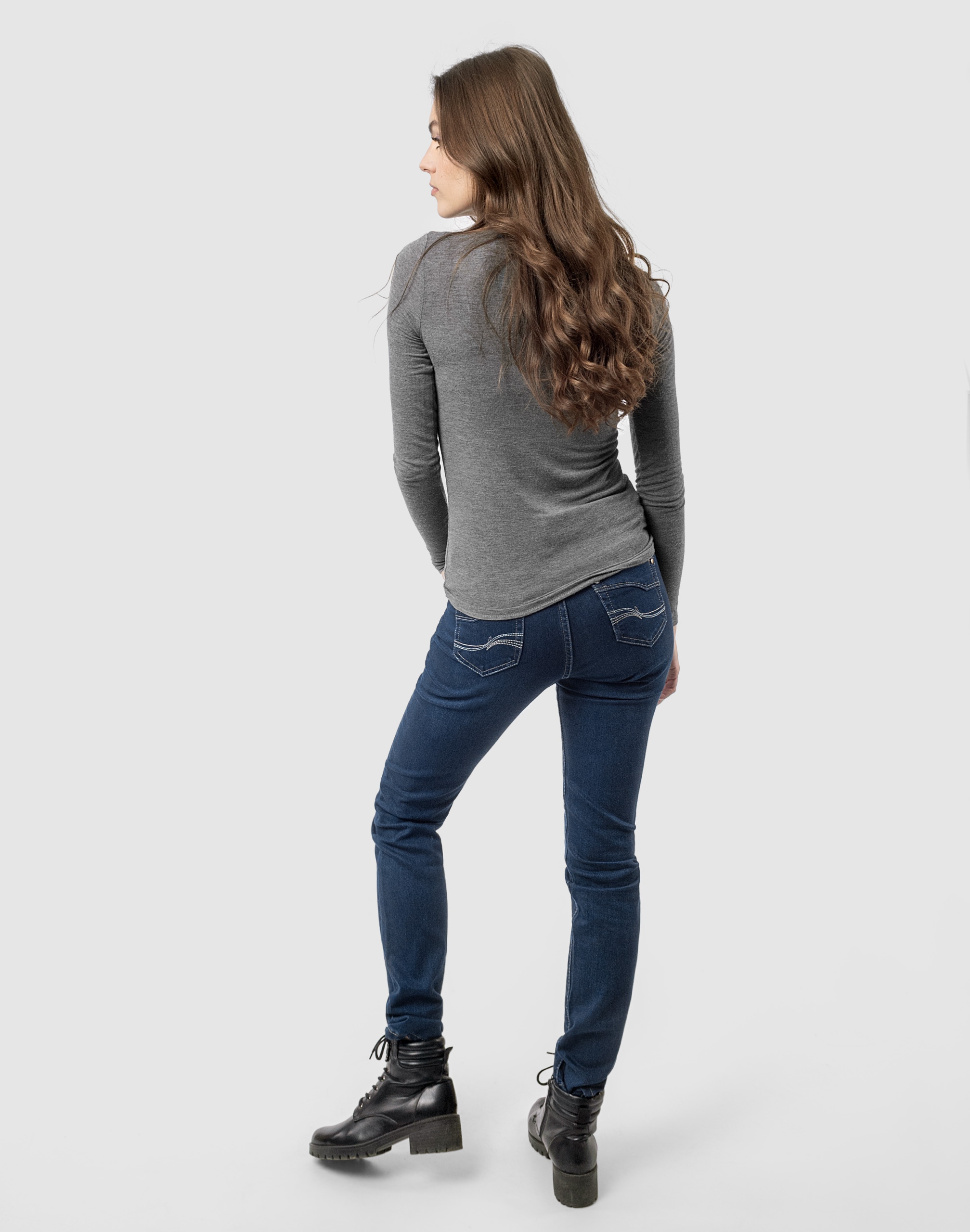 Oferowane przez nas spodnie uszyte są z wysokiej jakości tkaniny bawełnianej typu "Dark Blue Denim" z domieszką lycry dzięki czemu spodnie są bardziej elastyczne i doskonale dopasowują się do każdej sylwetki. Pozwalają na pełną swobodę ruchów co daje komfort przy siadaniu i zapewnia ogromny komfort noszenia. Możesz je śmiało łączyć zarówno ze szpilkami (idealnie wydłużają kobiece nogi), jak i obuwiem sportowym. Dobrze wyglądają również z podwiniętymi nogawkami. Niepozorne podwinięcie nogawek nadaje stylizacjom ciekawej nonszalancji i zadziorności. Zapewniają poczucie atrakcyjności przy jednoczesnym zachowaniu wygody i pełnej swobody ruchów.
