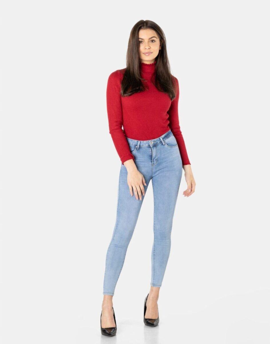 Oferowane przez nas spodnie uszyte są z wysokiej jakości tkaniny jeansowej „Light Blue Denim” z domieszką lycry (elastan), dzięki czemu spodnie są bardziej elastyczne, mocno przylegają do ciała a nogi wydają się się optycznie dłuższe. Pozwalają na pełną swobodę ruchów, co daje komfort przy siadaniu i zapewnia ogromny komfort noszenia. Możesz je śmiało łączyć zarówno ze szpilkami (idealnie wydłużają kobiece nogi), jak i obuwiem sportowym. Zapewniają poczucie atrakcyjności przy jednoczesnym zachowaniu wygody i pełnej swobody ruchów. Zawsze modny krój Slim Fit z wąską dopasowaną nogawką pozwoli Ci założyć je na wiele różnych okazji. Sprawdzony przez wiele zadowolonych klientek fason spodni sprawi, że w zależności od dopasowanego do nich elementu garderoby, będziesz zawsze odpowiednio ubrana na każdą okazję, zarówno na „sportowo” jak i na „elegancko”.