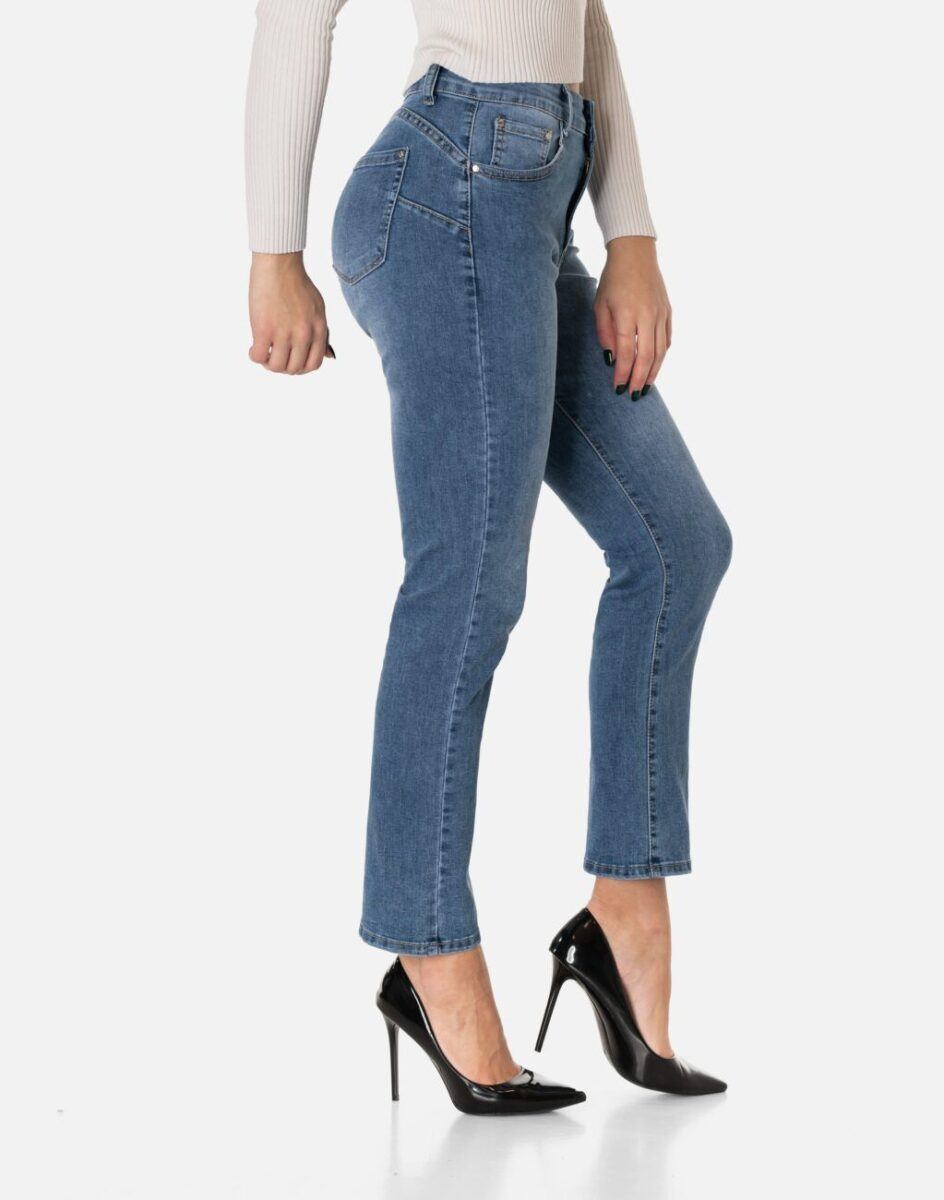 Oferowane przez nas spodnie uszyte są z wysokiej jakości tkaniny jeansowej „Light Blue Denim” z domieszką lycry, dzięki czemu spodnie są bardziej elastyczne, mocno przylegają do ciała a nogi wydają się się optycznie dłuższe. Pozwalają na pełną swobodę ruchów, co daje komfort przy siadaniu i zapewnia ogromny komfort noszenia. Modny i sprawdzony krój spodni sprawi, że w zależności od dopasowanego do nich elementu garderoby stworzysz wiele udanych stylizacji w których będziesz czuła się wygodnie i swobodnie. Możesz je śmiało łączyć zarówno z eleganckimi szpilkami (idealnie wydłużają kobiece nogi), lub w wersji bardziej „na luzie” z balerinami lub czółenkami na wysokim obcasie a Twoja stylizacja nabierze wyjątkowego charakteru. Zapewniają poczucie atrakcyjności przy jednoczesnym zachowaniu wygody i pełnej swobody ruchów. Sprawdzony przez wiele zadowolonych klientek fason spodni z wąską dopasowaną nogawką  pozwoli Ci założyć je na wiele różnych okazji a miłośniczki jeansów jednogłośnie twierdzą, że w trakcie ich noszenia pewność siebie szybuje bardzo wysoko.