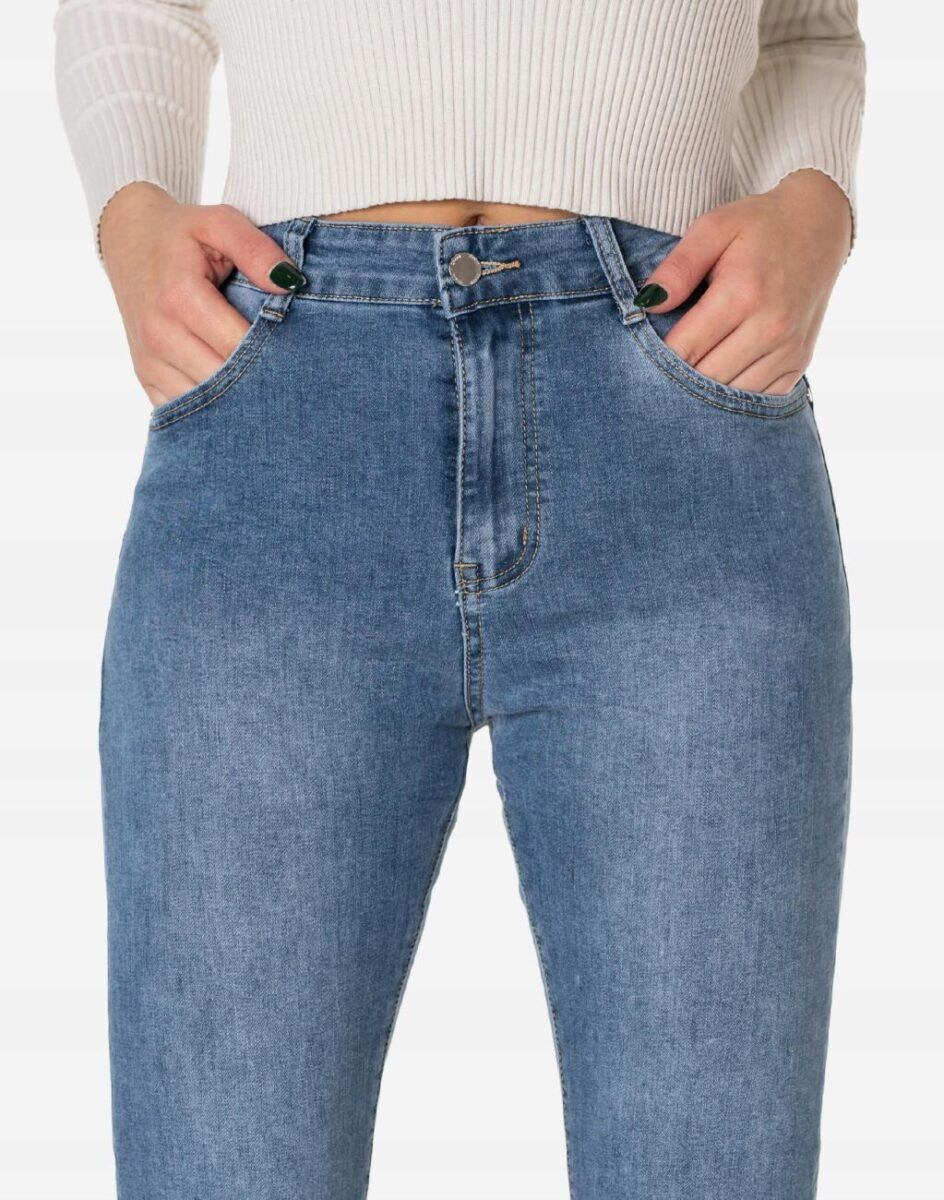 Oferowane przez nas spodnie uszyte są z wysokiej jakości tkaniny jeansowej „Light Blue Denim” z domieszką lycry, dzięki czemu spodnie są bardziej elastyczne, mocno przylegają do ciała a nogi wydają się się optycznie dłuższe. Pozwalają na pełną swobodę ruchów, co daje komfort przy siadaniu i zapewnia ogromny komfort noszenia. Modny i sprawdzony krój spodni sprawi, że w zależności od dopasowanego do nich elementu garderoby stworzysz wiele udanych stylizacji w których będziesz czuła się wygodnie i swobodnie. Możesz je śmiało łączyć zarówno z eleganckimi szpilkami (idealnie wydłużają kobiece nogi), lub w wersji bardziej „na luzie” z balerinami lub czółenkami na wysokim obcasie a Twoja stylizacja nabierze wyjątkowego charakteru. Zapewniają poczucie atrakcyjności przy jednoczesnym zachowaniu wygody i pełnej swobody ruchów. Sprawdzony przez wiele zadowolonych klientek fason spodni z wąską dopasowaną nogawką pozwoli Ci założyć je na wiele różnych okazji a miłośniczki jeansów jednogłośnie twierdzą, że w trakcie ich noszenia pewność siebie szybuje bardzo wysoko.