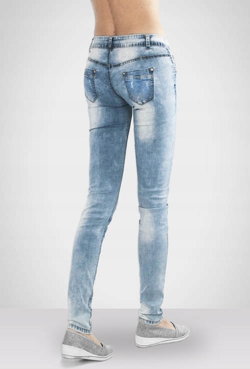 Oferowane przez nas spodnie uszyte są wysokiej jakości tkaniny bawełnianej typu "Light Blue Denim" z dodatkiem poliestru i elastanu, dzięki czemu spodnie są elastyczne, bardziej sprężyste i doskonale dopasowują się do każdej sylwetki. Pozwalają na pełną swobodę ruchów, co daje komfort przy siadaniu i zapewnia ogromny komfort noszenia. Zapewniają poczucie atrakcyjności przy jednoczesnym zachowaniu wygody i swobody ruchów. Możesz je śmiało łączyć zarówno ze szpilkami (idealnie wydłużają kobiece nogi), jak i obuwiem sportowym, a Twoja stylizacja nabierze wyjątkowego charakteru.