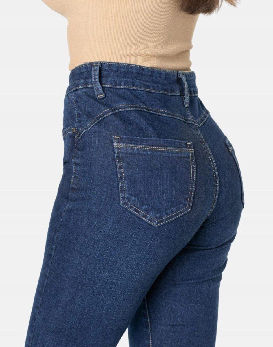Oferowane przez nas spodnie uszyte są z wysokiej jakości tkaniny jeansowej typu „Dark Blue Denim” z domieszką lycry (elastan), dzięki czemu spodnie są bardziej elastyczne, mocno przylegają do ciała a nogi wydają się się optycznie znacznie dłuższe. Wyjątkowo elastyczny materiał jeansowy pozwala na pełną swobodę ruchów, daje komfort przy siadaniu i zapewnia ogromny komfort noszenia. Możesz je śmiało łączyć zarówno ze szpilkami (idealnie wydłużają kobiece nogi), jak i obuwiem sportowym. Dobrze wyglądają również z podwiniętymi nogawkami. Niepozorne podwinięcie nogawek spodni nadaje stylizacjom ciekawej nonszalancji i zadziorności. Zapewniają poczucie atrakcyjności przy jednoczesnym zachowaniu wygody i pełnej swobody ruchów.