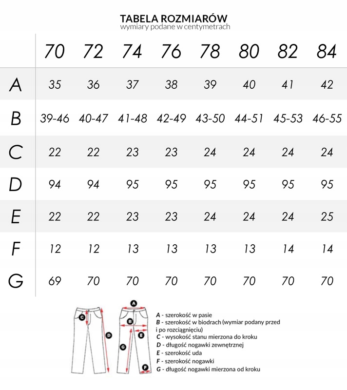 Oferowane przez nas spodnie uszyte są wysokiej jakości tkaniny bawełnianej typu "Dark Blue" z domieszką lycry (elastan), dzięki czemu spodnie są bardziej elastyczne i doskonale dopasowują się do każdej sylwetki. Pozwalają na pełną swobodę ruchów, co daje komfort przy siadaniu i zapewnia ogromny komfort noszenia. Zapewniają poczucie atrakcyjności przy jednoczesnym zachowaniu wygody i swobody ruchów. Możesz je śmiało łączyć zarówno ze szpilkami (idealnie wydłużają kobiece nogi), jak i obuwiem sportowym a Twoja stylizacja nabierze wyjątkowego charakteru.