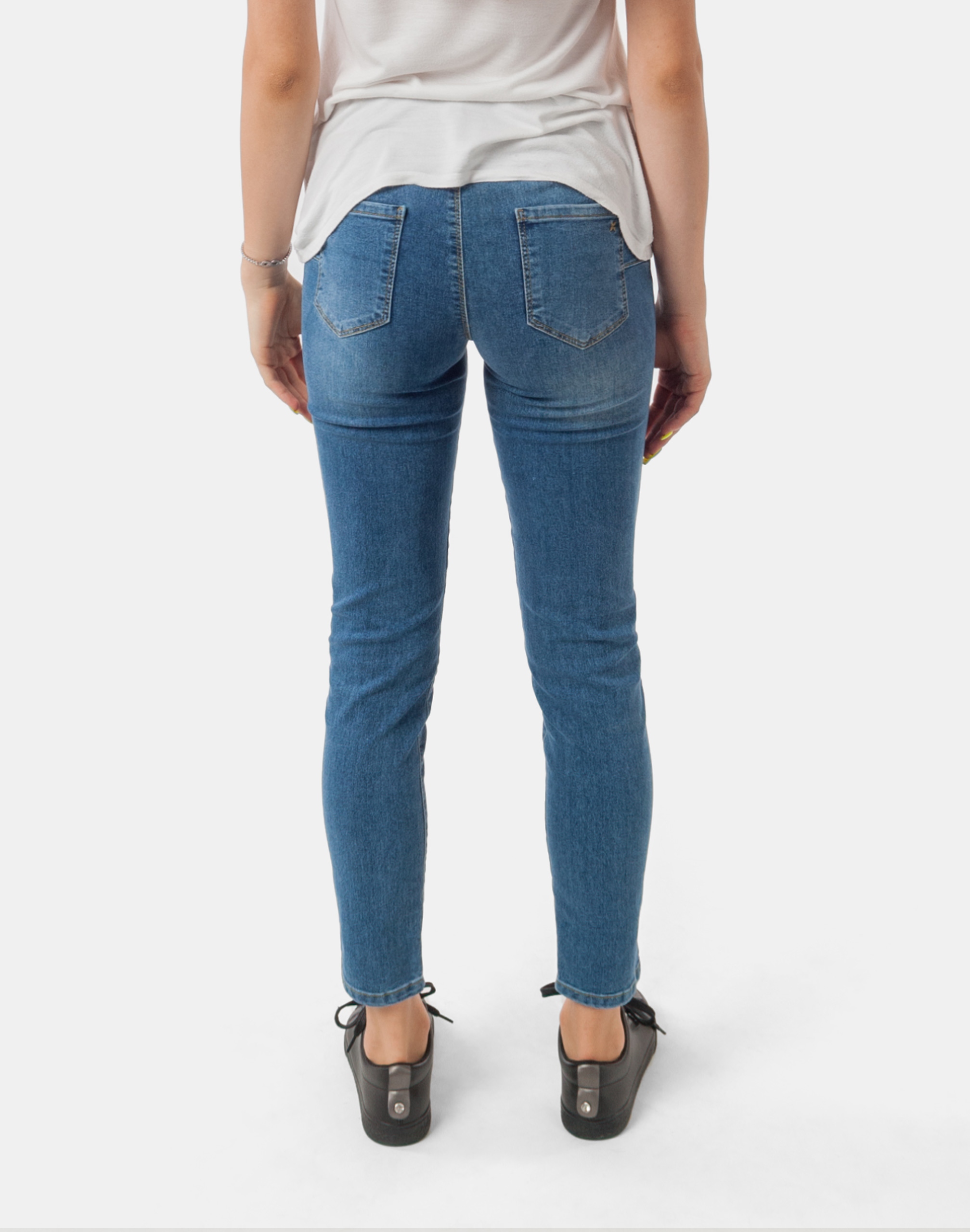 Oferowane przez nas spodnie uszyte są z wysokiej jakości tkaniny bawełnianej typu "Light Blue Denim" z domieszką lycry (elastan), dzięki czemu spodnie są bardziej elastyczne i doskonale dopasowują się do każdej sylwetki. Pozwalają na pełną swobodę ruchów, co daje komfort przy siadaniu i zapewnia ogromny komfort noszenia. Możesz je śmiało łączyć zarówno ze szpilkami (idealnie wydłużają kobiece nogi), jak i obuwiem sportowym. Zapewniają poczucie atrakcyjności przy jednoczesnym zachowaniu wygody i pełnej swobody ruchów.