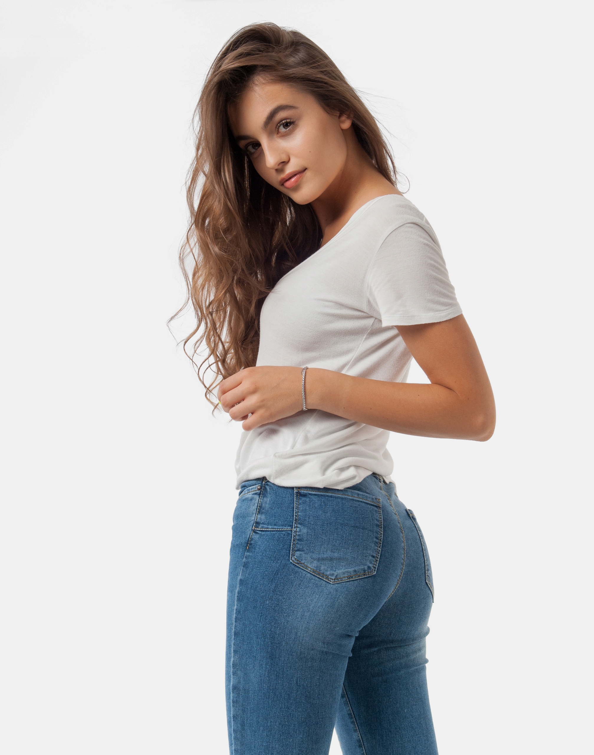 Oferowane przez nas spodnie uszyte są z wysokiej jakości tkaniny bawełnianej typu "Light Blue Denim" z domieszką lycry (elastan), dzięki czemu spodnie są bardziej elastyczne i doskonale dopasowują się do każdej sylwetki. Pozwalają na pełną swobodę ruchów, co daje komfort przy siadaniu i zapewnia ogromny komfort noszenia. Możesz je śmiało łączyć zarówno ze szpilkami (idealnie wydłużają kobiece nogi), jak i obuwiem sportowym. Zapewniają poczucie atrakcyjności przy jednoczesnym zachowaniu wygody i pełnej swobody ruchów.