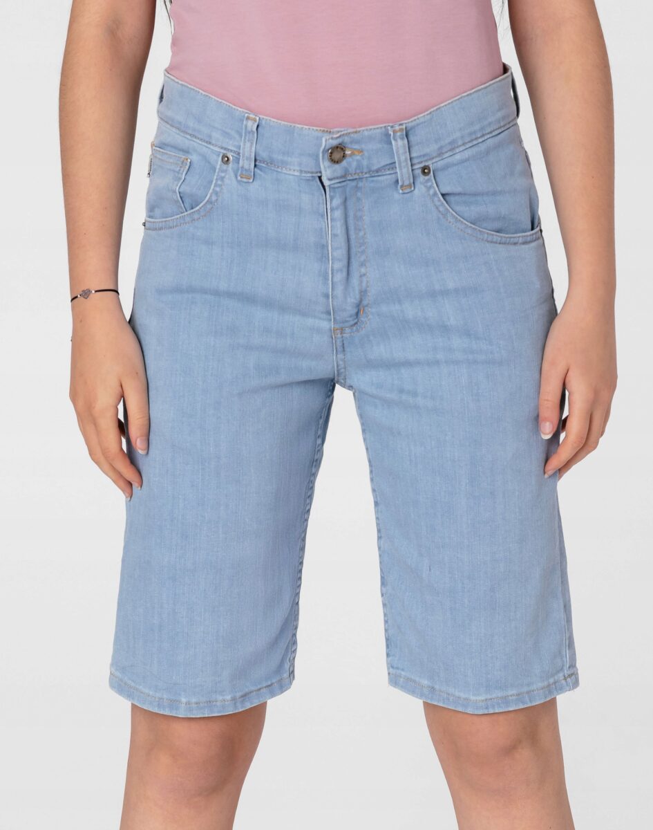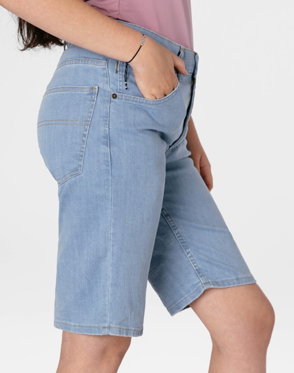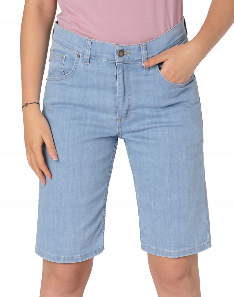 Oferowane przez nas spodenki uszyte są wysokiej jakości cienkiej tkaniny jeansowej "Denim Blue" z domieszką lycry (elastan), dzięki czemu są bardziej elastyczne i doskonale dopasowują się do każdej figury. Niewielki dodatek elastanu (lycra) sprawia że spodnie są bardziej elastyczne, dobrze dopasowują się do sylwetki, i są bardzo komfortowe w użytkowaniu. Łatwo się je zakłada i są znacznie wygodniejsze od jeansów, które lycry nie mają. Poza tym bawełna ma tendencję do kurczenia się w praniu, dlatego lycra sprawia, że spodnie są wyjątkowo praktyczne i można je bez problemu założyć zaraz po wysuszeniu. Pozwalają na pełną swobodę ruchów, co daje wygodę przy siadaniu i zapewnia ogromny komfort noszenia. Zapewniają poczucie atrakcyjności, przy jednoczesnym zachowaniu wygody i swobody ruchów. Możesz je śmiało łączyć zarówno ze szpilkami (idealnie wydłużają kobiece nogi), jak i obuwiem sportowym, a Twoja stylizacja nabierze wyjątkowego charakteru. Dbając o wygląd jednocześnie modny i naznaczony letnią swobodą, warto założyć jeansowe bermudy i nawet w mieście poczuć oddech wakacji.