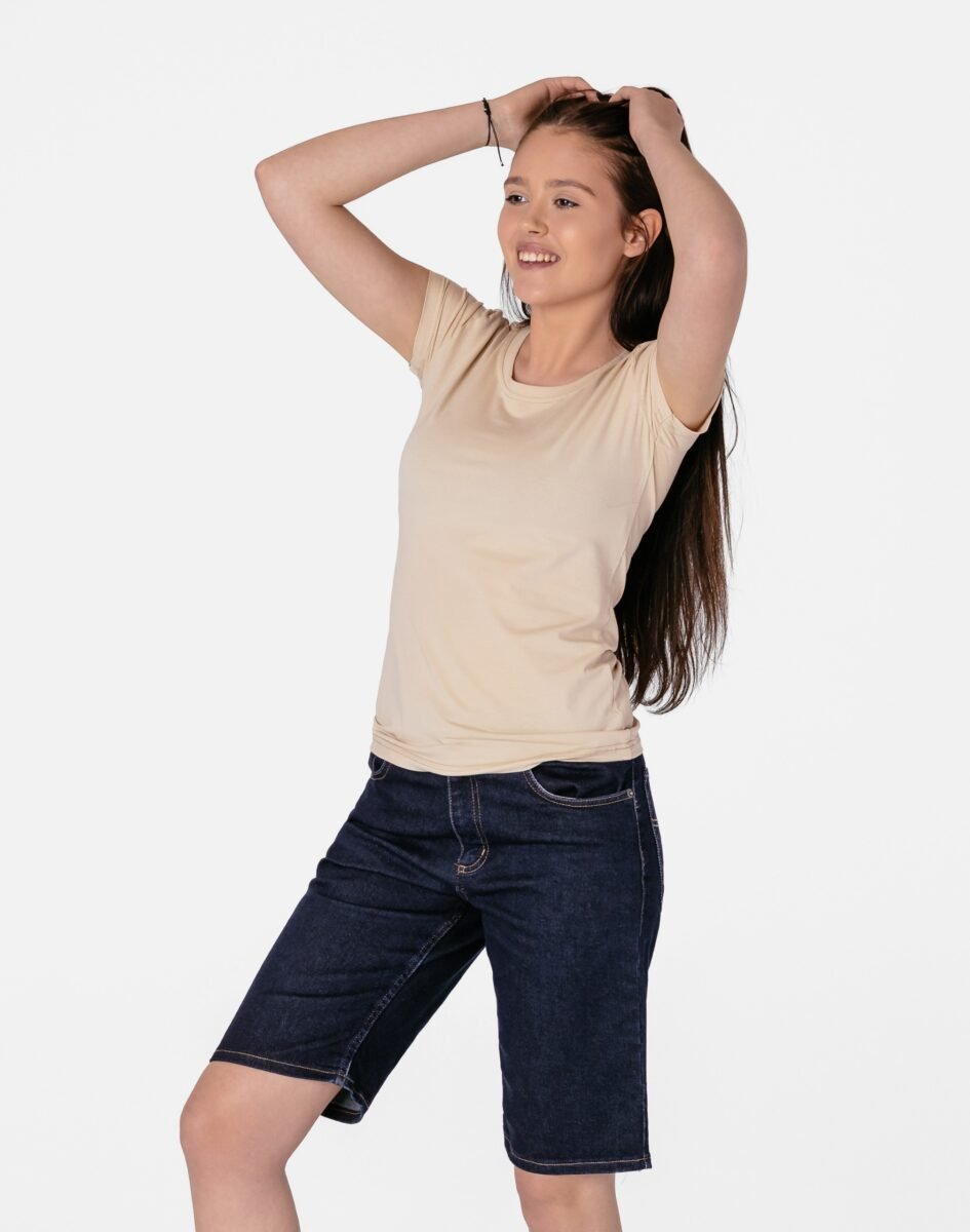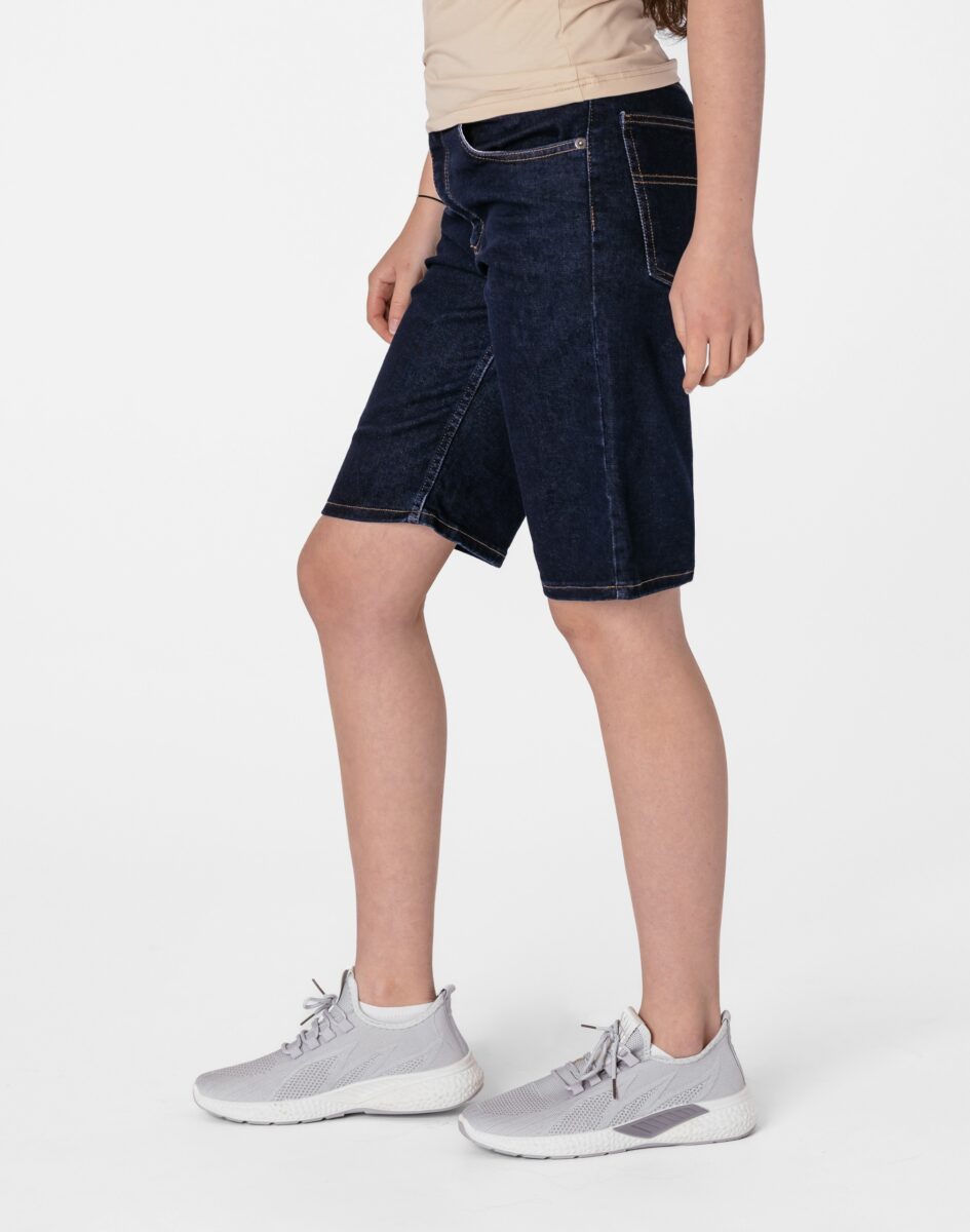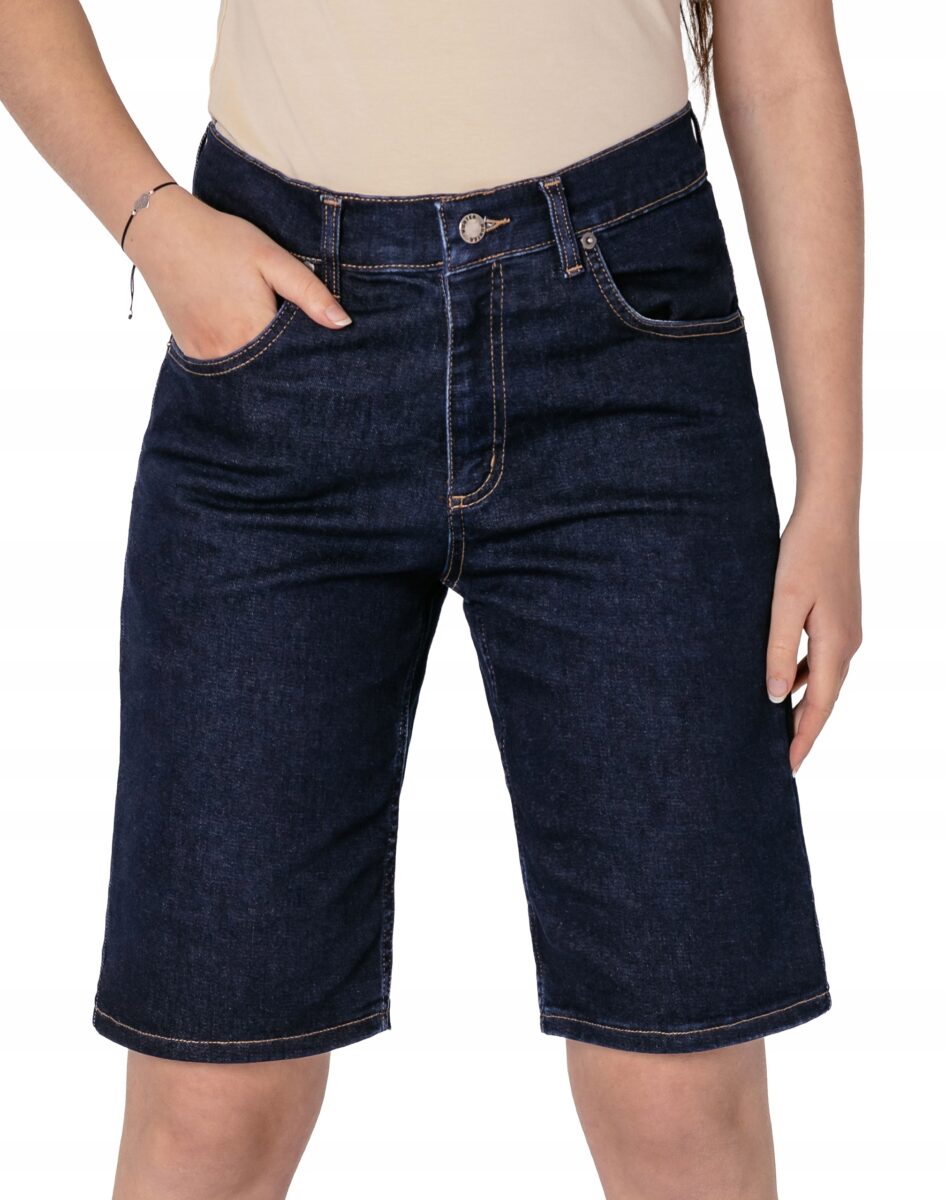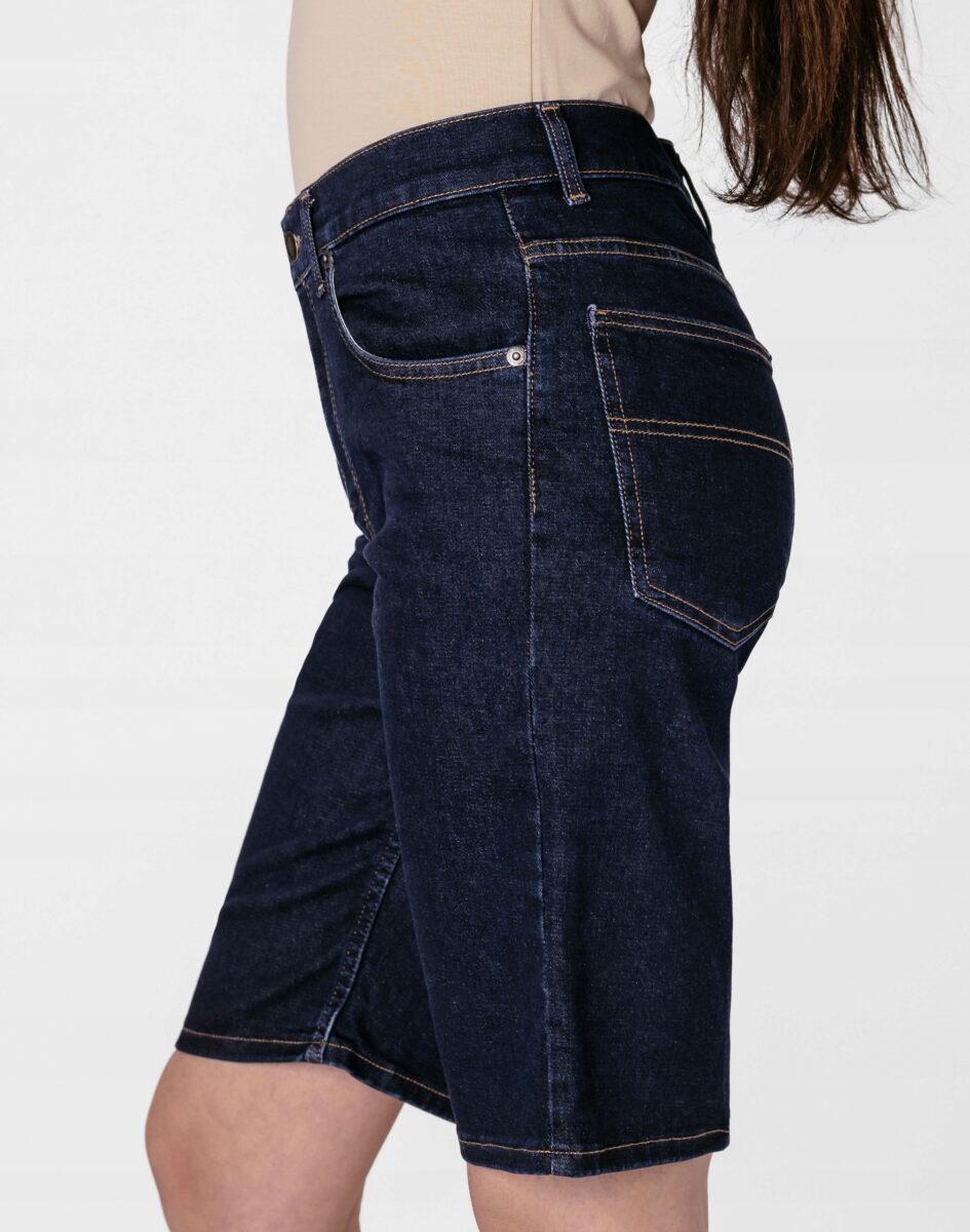 Oferowane przez nas spodenki uszyte są wysokiej jakości cienkiej tkaniny jeansowej "Denim Blue" z domieszką lycry (elastan), dzięki czemu są bardziej elastyczne i doskonale dopasowują się do każdej figury. Niewielki dodatek elastanu (lycra) sprawia że spodnie są bardziej elastyczne, dobrze dopasowują się do sylwetki, i są bardzo komfortowe w użytkowaniu. Łatwo się je zakłada i są znacznie wygodniejsze od jeansów, które lycry nie mają. Poza tym bawełna ma tendencję do kurczenia się w praniu, dlatego lycra sprawia, że spodnie są wyjątkowo praktyczne i można je bez problemu założyć zaraz po wysuszeniu. Pozwalają na pełną swobodę ruchów, co daje wygodę przy siadaniu i zapewnia ogromny komfort noszenia. Zapewniają poczucie atrakcyjności, przy jednoczesnym zachowaniu wygody i swobody ruchów. Możesz je śmiało łączyć zarówno ze szpilkami (idealnie wydłużają kobiece nogi), jak i obuwiem sportowym, a Twoja stylizacja nabierze wyjątkowego charakteru. Dbając o wygląd jednocześnie modny i naznaczony letnią swobodą, warto założyć jeansowe bermudy i nawet w mieście poczuć oddech wakacji.