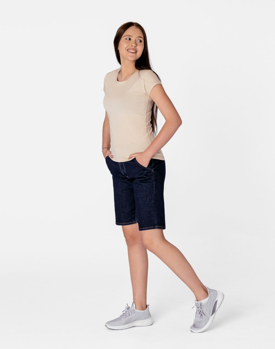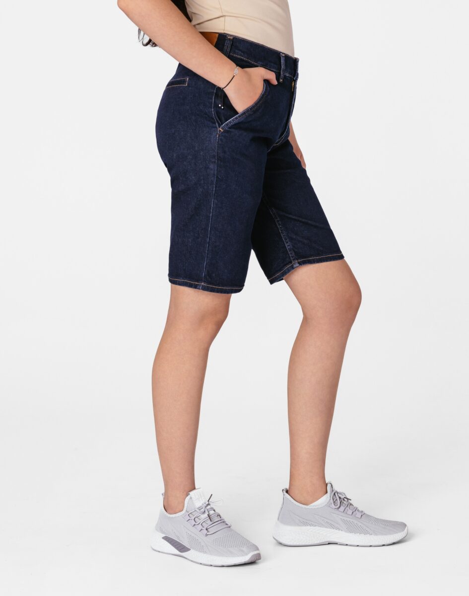 Oferowane przez nas spodenki uszyte są wysokiej jakości cienkiej tkaniny jeansowej "Denim Blue" z domieszką lycry (elastan), dzięki czemu są bardziej elastyczne i doskonale dopasowują się do każdej figury. Niewielki dodatek elastanu (lycra) sprawia że spodnie są bardziej elastyczne, dobrze dopasowują się do sylwetki, i są bardzo komfortowe w użytkowaniu. Łatwo się je zakłada i są znacznie wygodniejsze od jeansów, które lycry nie mają. Poza tym bawełna ma tendencję do kurczenia się w praniu, dlatego lycra sprawia, że spodnie są wyjątkowo praktyczne i można je bez problemu założyć zaraz po wysuszeniu. Pozwalają na pełną swobodę ruchów, co daje wygodę przy siadaniu i zapewnia ogromny komfort noszenia. Zapewniają poczucie atrakcyjności, przy jednoczesnym zachowaniu wygody i swobody ruchów. Możesz je śmiało łączyć zarówno ze szpilkami (idealnie wydłużają kobiece nogi), jak i obuwiem sportowym, a Twoja stylizacja nabierze wyjątkowego charakteru. Dbając o wygląd jednocześnie modny i naznaczony letnią swobodą, warto założyć jeansowe bermudy i nawet w mieście poczuć oddech wakacji.