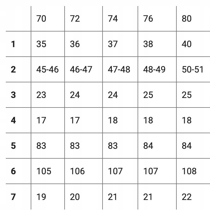 - szerokość w biodrach (wymiar podany przed i po rozciągnięciu) (cm)