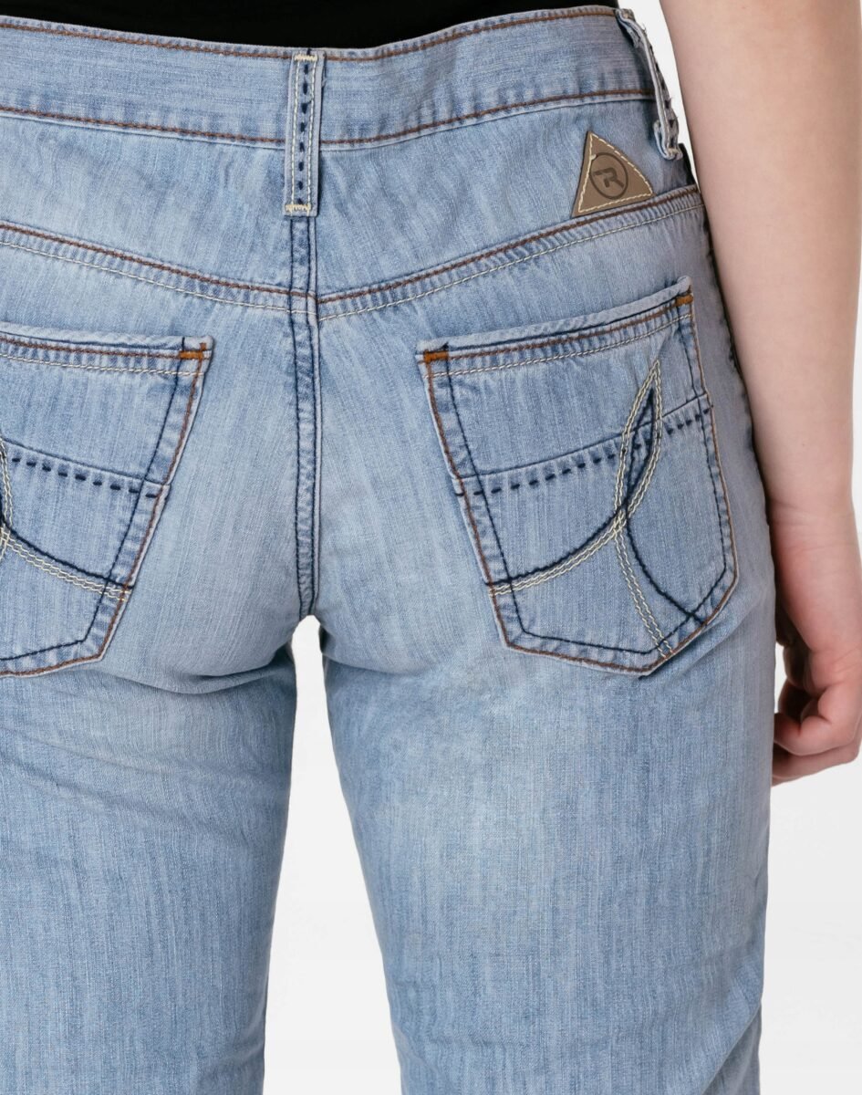 - Wzór: ozdobnie sprany Denim Jeans z fabrycznym efektem spranego jeansu "used-look"– rozjaśnieniami iprzetarciami
