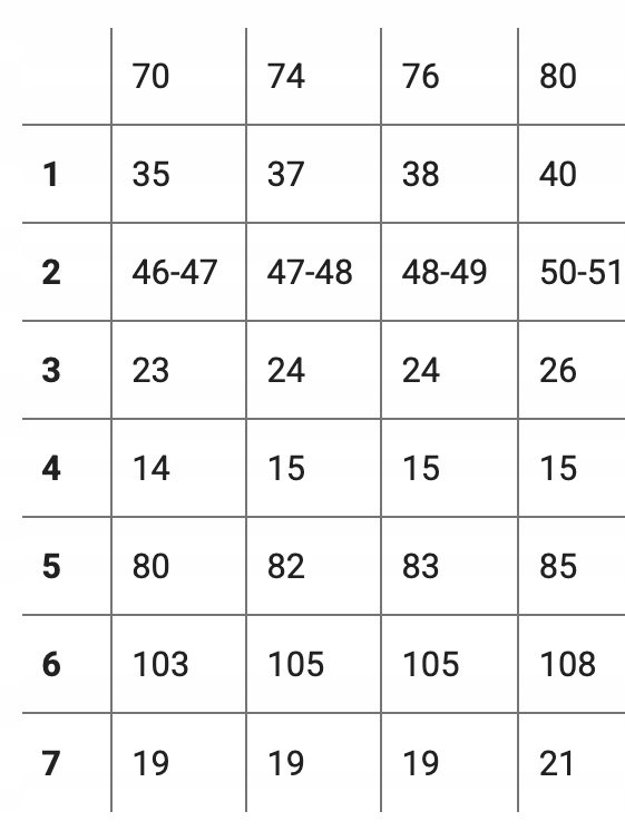 TABELA ROZMIARÓW