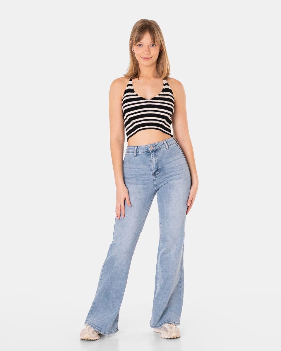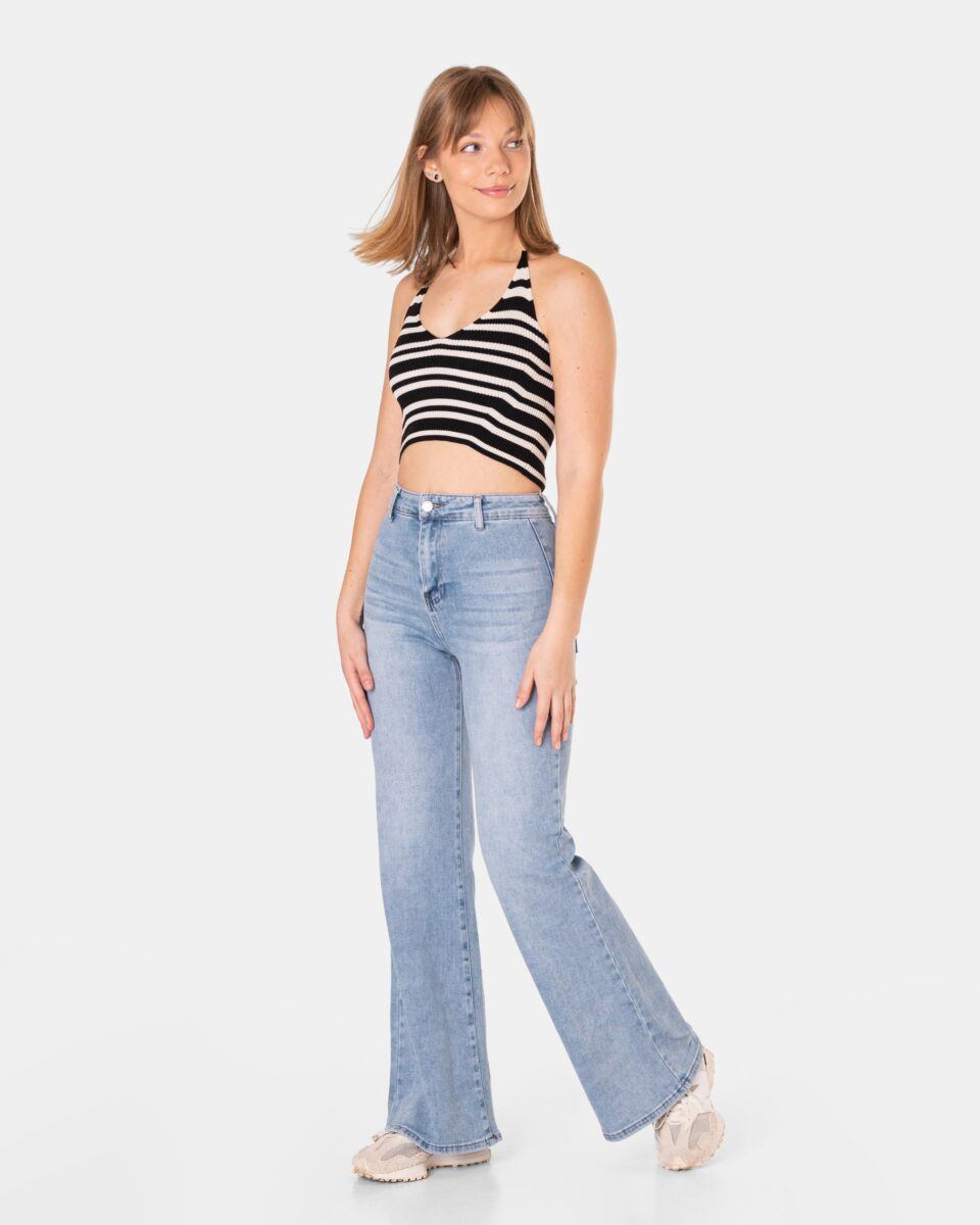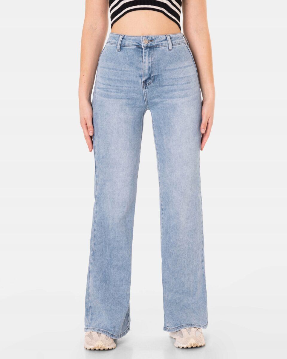 Spodnie model C012# to powracające do łask jeansy damskie typu szwedy wide leg w kolorze jasno niebieskim „Light Blue”, o charakterystycznych dla tego modelu nogawkach wide, rozszerzających się już od bioder i fabrycznym efektem znoszonego, spranego jeansu „used-look”. W procesie produkcji poddane zostały specjalnym zabiegom postarzającym materiał polegającym to na wycieraniu, wielokrotnym wypieraniu barwnika i tworzeniu efektownych przetarć. Wykonane z wysokiej jakości gęstej, trwałej i mocnej tkaniny jeansowej „Light Blue Denim” z modnym efektem sprania i przetarciami w nieśmiertelnym stylu „OldVintage”. Efektowne rozjaśnienia i wytarcia mają na celu wywołanie tak modnego efektu długo noszonych, spranych jeansów.