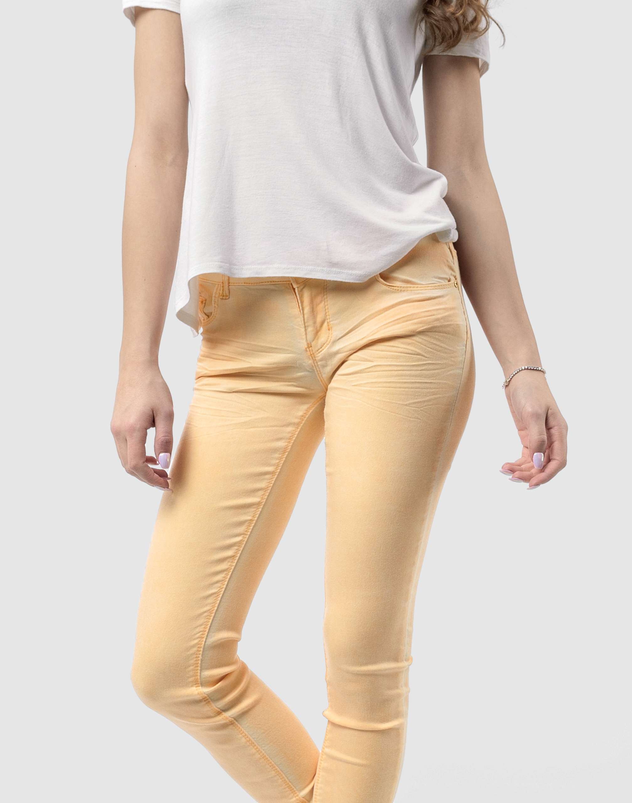 Oferowane przez nas spodnie uszyte są z wysokiej jakości tkaniny bawełnianej z domieszką lycry (elastan), która odznacza się wysoką elastycznością, co gwarantuje że spodnie nie będą się deformować i odkształcać nawet po długim użytkowaniu. Spodnie świetnie przylegają do ciała i pozwalają na pełną swobodę ruchów, co daje komfort przy siadaniu i zapewnia ogromny komfort noszenia. Możesz je śmiało łączyć zarówno ze szpilkami (idealnie wydłużają kobiece nogi), jak i obuwiem sportowym. Dobrze wyglądają również z podwiniętymi nogawkami odsłaniającymi kostkę. Niepozorne podwinięcie nogawek nadaje stylizacjom ciekawej nonszalancji i zadziorności. Zapewnia poczucie atrakcyjności przy jednoczesnym zachowaniu wygody i pełnej swobody ruchów.
