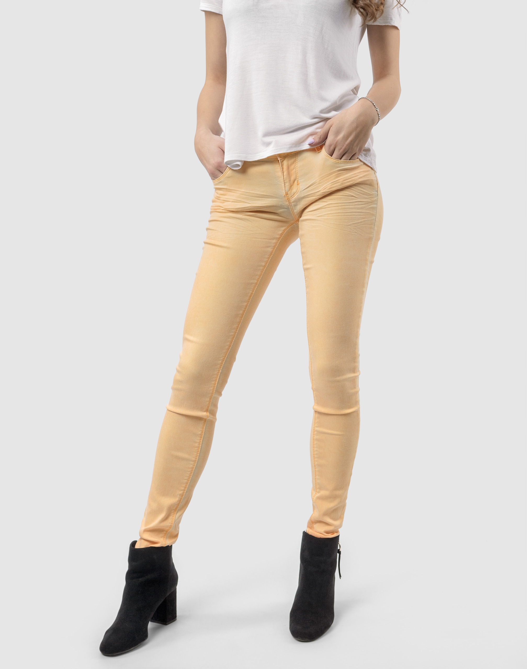Spodnie damskie model 1015 Super Slim to klasyczna rurka z wąską, mocno dopasowaną nogawką o wyszczuplającym optycznie kobiecą sylwetkę fasonie i średnim stanie. Zapinane są na kryty zamek błyskawiczny i metalowy guzik sygnowany logiem firmy. Z przodu mają dwie kieszonki zaokrąglone oraz mniejszą kieszonkę tzw. bilonówkę, a na tyle klasyczne kieszenie naszywane jak w typowych spodniach jeansowych. W pasie szlufki umożliwiające stylizacje z paskiem. Na nogawkach i kieszeniach fabrycznie uzyskane w procesie dekatyzacji efektowne przetarcia i marszczenia w modnym stylu "used-look". Najbardziej podatne na uszkodzenia miejsca wzmocnione są dodatkowymi przeszyciami oraz małymi ozdobnymi nitami.