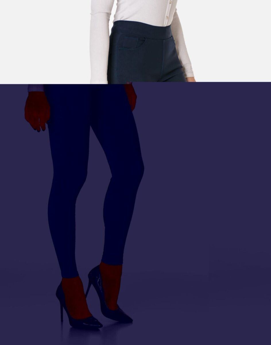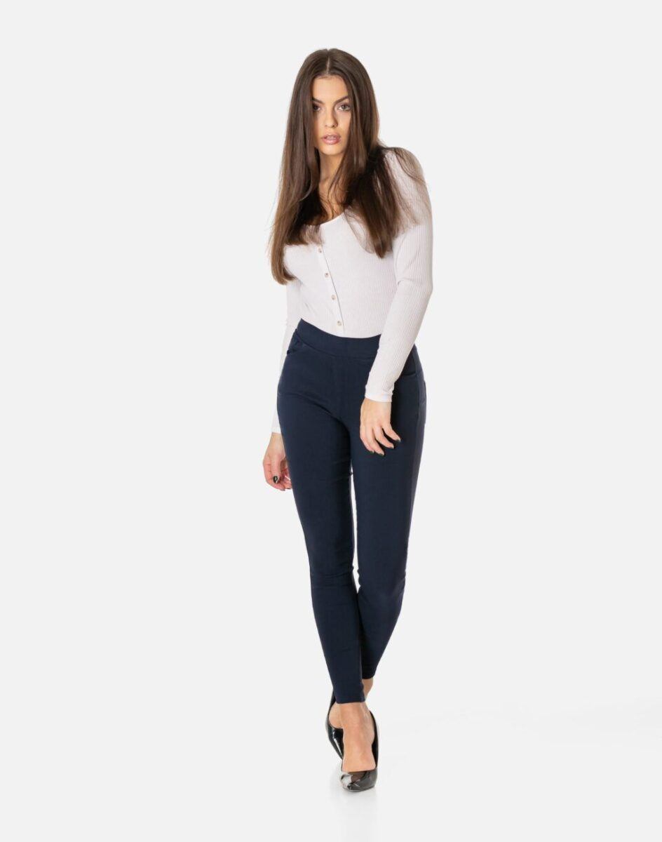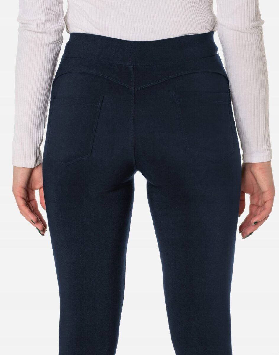 Oferowane przez nas spodnie uszyte są z wysokiej jakości tkaniny bawełnianej „Dark Blue” z domieszką lycry (elastan), dzięki czemu spodnie są bardziej elastyczne, mocno przylegają do ciała a nogi wydają się się optycznie dłuższe. Pozwalają na pełną swobodę ruchów, co daje komfort przy siadaniu i zapewnia ogromny komfort noszenia. Wewnętrzna strona spodni posiada wykończenie typu „MESCH” (fabrycznie wykończona jest miłym w dotyku i przyjemnym dla ciała meszkiem tzw. „szczotkowana”) zapewniające bardzo przyjemny kontakt ze skórą oraz komfort cieplny. Możesz je śmiało łączyć zarówno z eleganckimi (idealnie wydłużają kobiece nogi), lub w wersji bardziej „na luzie” z balerinami lub czółenkami na wysokim obcasie a Twoja stylizacja nabierze wyjątkowego charakteru. Zapewniają poczucie atrakcyjności przy jednoczesnym zachowaniu wygody i pełnej swobody ruchów. Sprawdzony przez wiele zadowolonych klientek fason Slim Fit z wąską dopasowaną nogawką pozwoli Ci założyć je na wiele różnych okazji a miłośniczki spodni Push-Up jednogłośnie twierdzą, że w trakcie ich noszenia pewność siebie szybuje bardzo wysoko.
