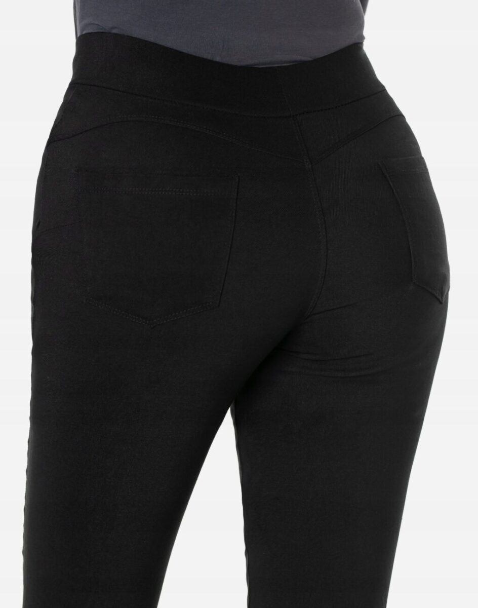 Oferowane przez nas spodnie uszyte są z wysokiej jakości tkaniny bawełnianej „Super Black” z domieszką poliestru i lycry (elastan), dzięki czemu spodnie są bardziej elastyczne, mocno przylegają do ciała a nogi wydają się się optycznie dłuższe. Pozwalają na pełną swobodę ruchów, co daje komfort przy siadaniu i zapewnia ogromny komfort noszenia. Wewnętrzna strona spodni posiada wykończenie typu „MESCH” (fabrycznie wykończona jest miłym w dotyku i przyjemnym dla ciała meszkiem tzw. „szczotkowana”) zapewniające bardzo przyjemny kontakt ze skórą oraz komfort cieplny. Możesz je śmiało łączyć zarówno z eleganckimi (idealnie wydłużają kobiece nogi), lub w wersji bardziej „na luzie” z balerinami lub czółenkami na wysokim obcasie a Twoja stylizacja nabierze wyjątkowego charakteru. Zapewniają poczucie atrakcyjności przy jednoczesnym zachowaniu wygody i pełnej swobody ruchów. Sprawdzony przez wiele zadowolonych klientek fason Slim Fit z wąską dopasowaną nogawką pozwoli Ci założyć je na wiele różnych okazji a miłośniczki spodni Push-Up jednogłośnie twierdzą, że w trakcie ich noszenia pewność siebie szybuje bardzo wysoko.