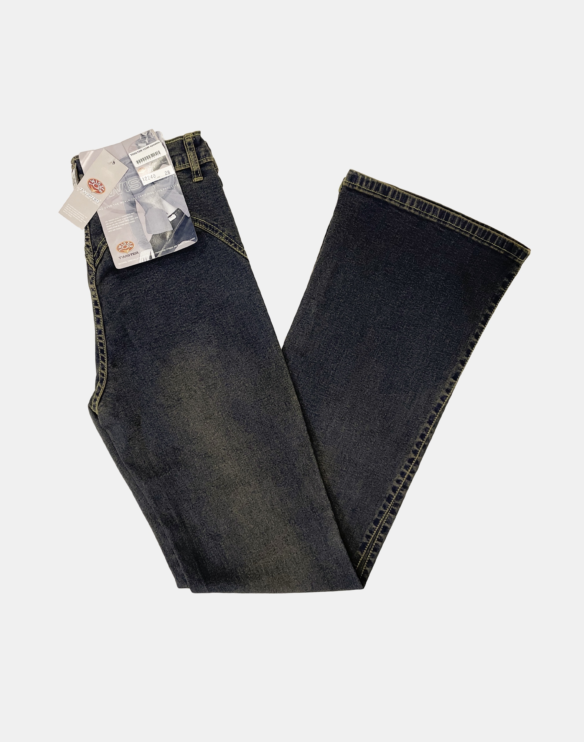 Super modne spodnie firmy TWISTER JEANS COMPANY model 12240 to powracające do łask jeansy typu "dzwony" w kolorze "Bad Wash Blue", o charakterystycznych dla tego modelu rozszerzających się dołem nogawkach i wyższym stanie "High Rise". Wykonane ze 100% tkaniny bawełnianej typu Denim Jeans, poddanej w procesie produkcji obróbce chemicznej-dekatyzacji celem uzyskania zamierzonego efektu "BAD WASH". Wykorzystując metodę "BAD WASH" uzyskano charakter VIGTAGE czyli celowo postarzone wytarcia spodni w subtelnie brązowym odcieniu. Zapinane są na kryty zamek błyskawiczny i metalowy guzik. Z przodu mają dwie kieszonki wpuszczane, tył gładki bez kieszeni. W pasie szlufki umożliwiające stylizacje z paskiem. Stan podwyższony "High Rise" zgrabnie modelujący sylwetkę w talii.