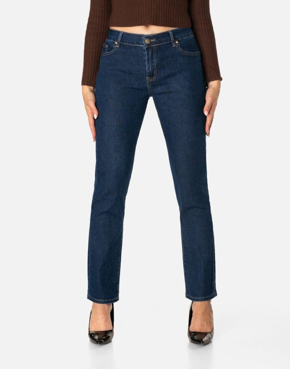 Klasyczne Granatowe Jeansy Damskie z Wyższym Stanem i Prostą Nogawką Regular Fit