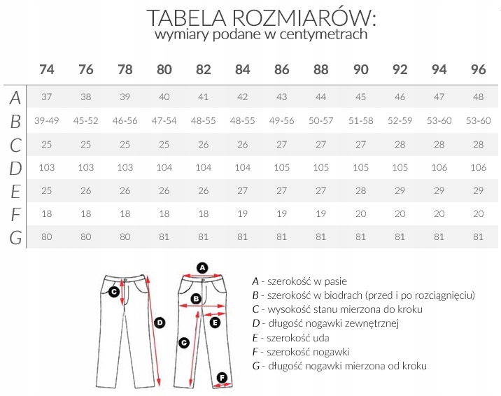 Proszę nie sugerować się rozmiarem pasa podanym w calach (np. W32, W38) ponieważ różne firmy stosują bardzo różne oznaczenia rozmiaru na co my jako sprzedawcy na Allegro nie mamy żadnego wpływu. Najlepiej jest zmierzyć swoje stare spodnie dokładnie centymetrem (zapiąć guzik i naciągnąć pas, nie luźno na ziemi) następnie wybrać odpowiedni rozmiar podany w centymetrach z naszych aukcji.