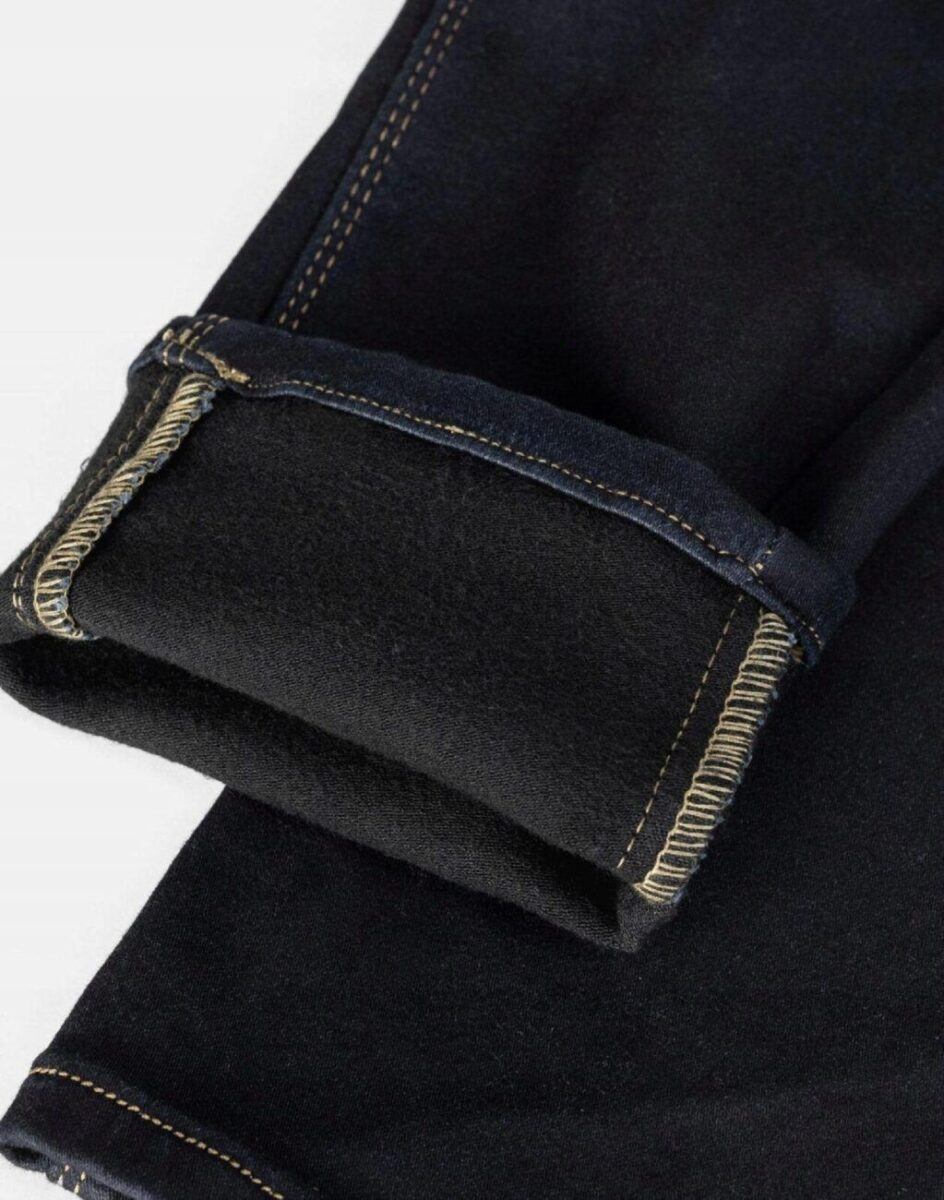 - Wygodny w noszeniu ciepły i elastyczny materiał jeansowy, fabrycznie „szczotkowany” od wewnętrznej strony (z wykończeniem typu „MESCH”)
