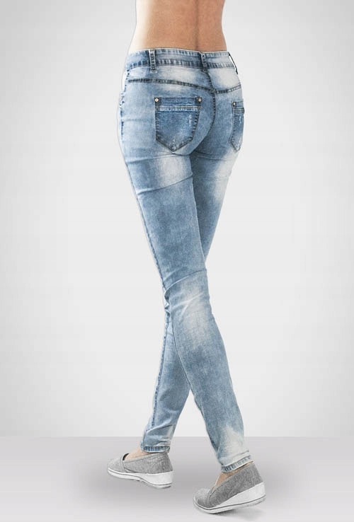 Oferowane przez nas spodnie uszyte są wysokiej jakości tkaniny bawełnianej typu "Light Blue Denim" z dodatkiem poliestru i elastanu, dzięki czemu spodnie są elastyczne, bardziej sprężyste i doskonale dopasowują się do każdej sylwetki. Pozwalają na pełną swobodę ruchów, co daje komfort przy siadaniu i zapewnia ogromny komfort noszenia. Zapewniają poczucie atrakcyjności przy jednoczesnym zachowaniu wygody i swobody ruchów. Możesz je śmiało łączyć zarówno ze szpilkami (idealnie wydłużają kobiece nogi), jak i obuwiem sportowym, a Twoja stylizacja nabierze wyjątkowego charakteru.