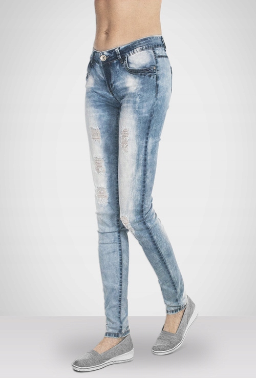 Spodnie Jeansy Rurki Damskie Wysoki Stan Strecz Przetarcia Dziury 078 76 cm