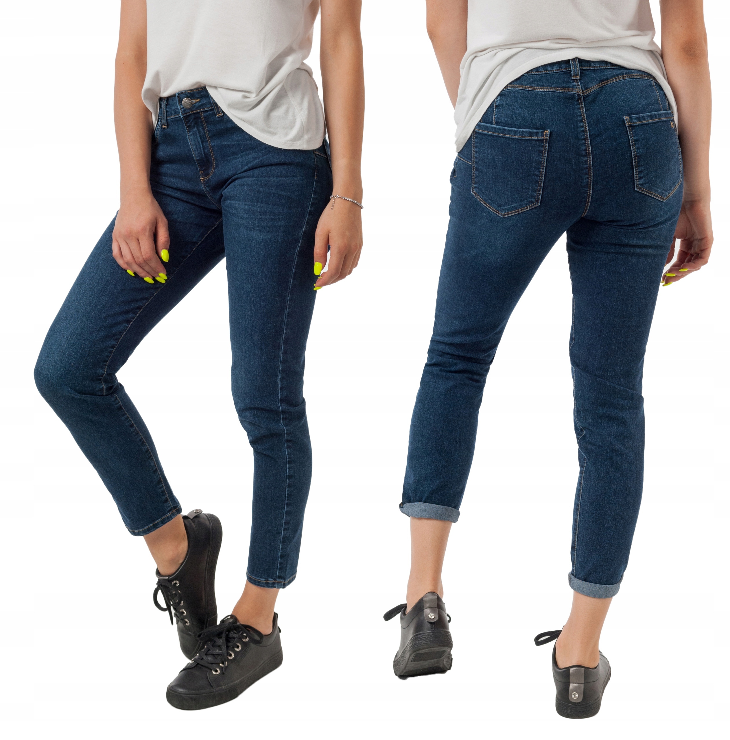 Oferowane przez nas spodnie uszyte są z wysokiej jakości tkaniny bawełnianej typu "Dark Blue Denim" z domieszką lycry (elastan), dzięki czemu spodnie są bardziej elastyczne i doskonale dopasowują się do każdej sylwetki. Pozwalają na pełną swobodę ruchów, co daje komfort przy siadaniu i zapewnia ogromny komfort noszenia. Możesz je śmiało łączyć zarówno ze szpilkami (idealnie wydłużają kobiece nogi), jak i obuwiem sportowym. Zapewniają poczucie atrakcyjności przy jednoczesnym zachowaniu wygody i pełnej swobody ruchów.