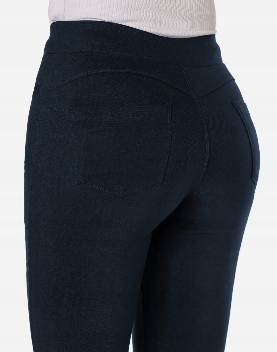 Oferowane przez nas spodnie uszyte są z wysokiej jakości tkaniny bawełnianej „Dark Blue Denim” z domieszką lycry (elastan), dzięki czemu spodnie są bardziej elastyczne, mocno przylegają do ciała a nogi wydają się się optycznie dłuższe. Pozwalają na pełną swobodę ruchów, co daje komfort przy siadaniu i zapewnia ogromny komfort noszenia. Wewnętrzna strona spodni posiada wykończenie typu „MESCH” (fabrycznie wykończona jest miłym w dotyku i przyjemnym dla ciała meszkiem tzw. „szczotkowana”) zapewniające bardzo przyjemny kontakt ze skórą oraz komfort cieplny. Możesz je śmiało łączyć zarówno z eleganckimi (idealnie wydłużają kobiece nogi), lub w wersji bardziej „na luzie” z balerinami lub czółenkami na wysokim obcasie a Twoja stylizacja nabierze wyjątkowego charakteru. Zapewniają poczucie atrakcyjności przy jednoczesnym zachowaniu wygody i pełnej swobody ruchów. Sprawdzony przez wiele zadowolonych klientek fason Slim Fit z wąską dopasowaną nogawką pozwoli Ci założyć je na wiele różnych okazji a miłośniczki spodni Push-Up jednogłośnie twierdzą, że w trakcie ich noszenia pewność siebie szybuje bardzo wysoko.