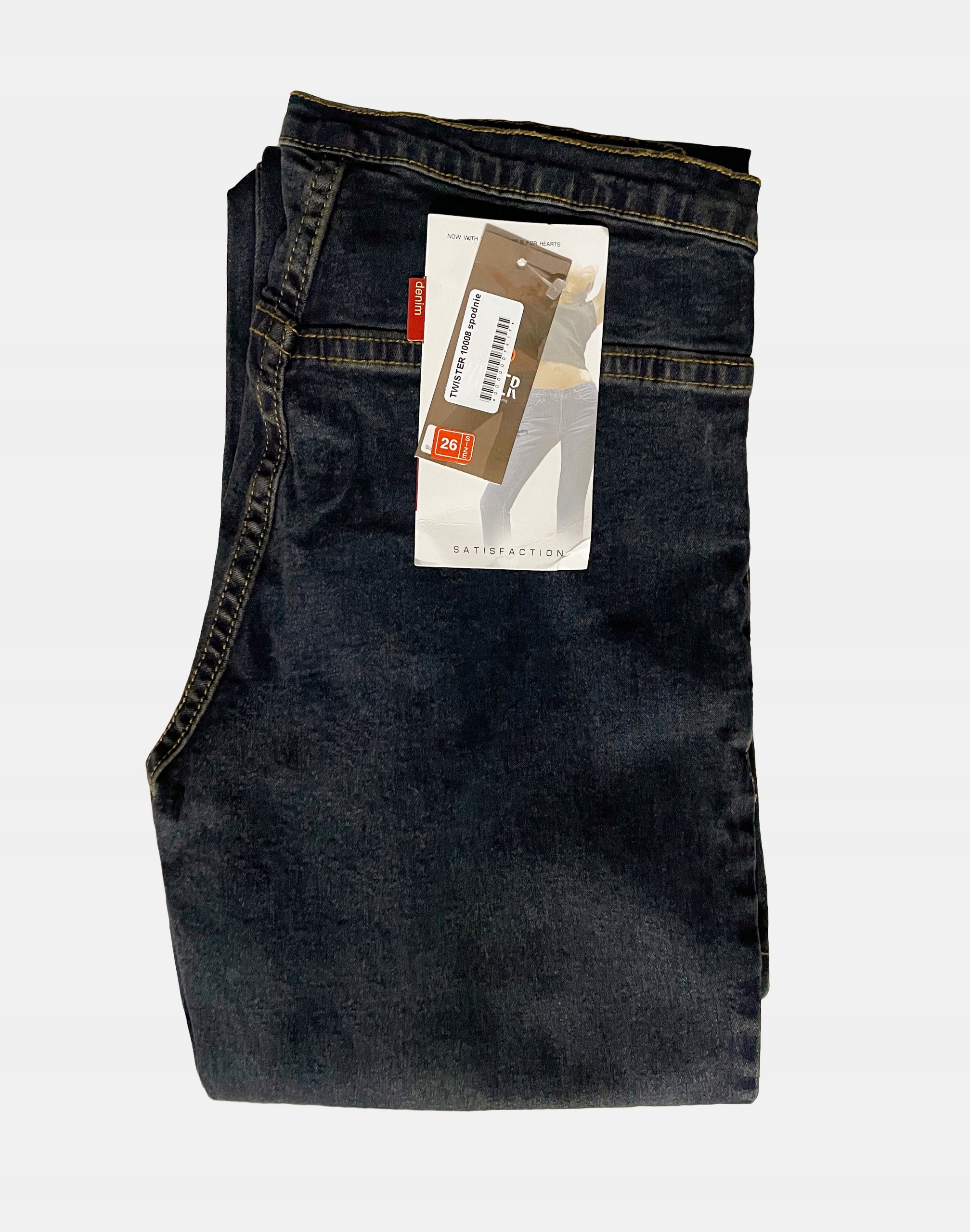 Super modne spodnie firmy TWISTER JEANS COMPANY model 10008 to powracające do łask jeansy typu "dzwony" w kolorze granatowym "Bad Wash" o charakterystycznych dla tego modelu rozszerzających się dołem nogawkach i wyższym stanie "High Rise". Wykonane ze 100% tkaniny bawełnianej typu Denim Jeans, poddanej w procesie produkcji obróbce chemicznej-dekatyzacji celem uzyskania zamierzonego efektu "BAD WASH". Wykorzystując metodę "BAD WASH" uzyskano charakter VIGTAGE czyli celowo postarzone wytarcia i pomięcia spodni w subtelnie szaro-granatowym odcieniu. Zapinane są na kryty zamek błyskawiczny i ozdobny metalowy guzik. Stan podwyższony "High Rise" zgrabnie modelujący kobiecą sylwetkę w talii. Spodnie uszyte są z wysokiej jakości tkaniny jeansowej delikatnie elastycznej i sprężystej co pozwala na pełną swobodę ruchów, daje komfort przy siadaniu i zapewnia ogromny komfort noszenia.