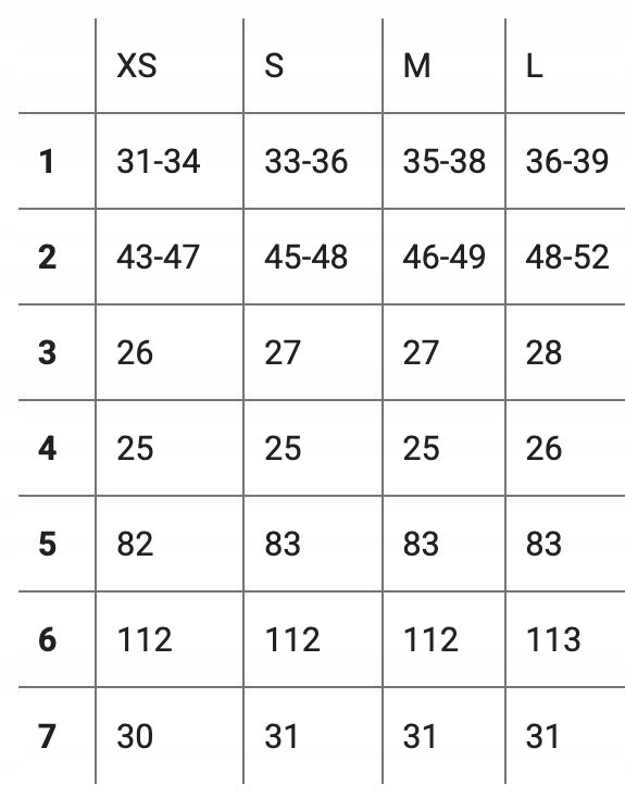Obwód pasa: 62-68 cm (Sprawdź pozostałe wymiary w tabeli)