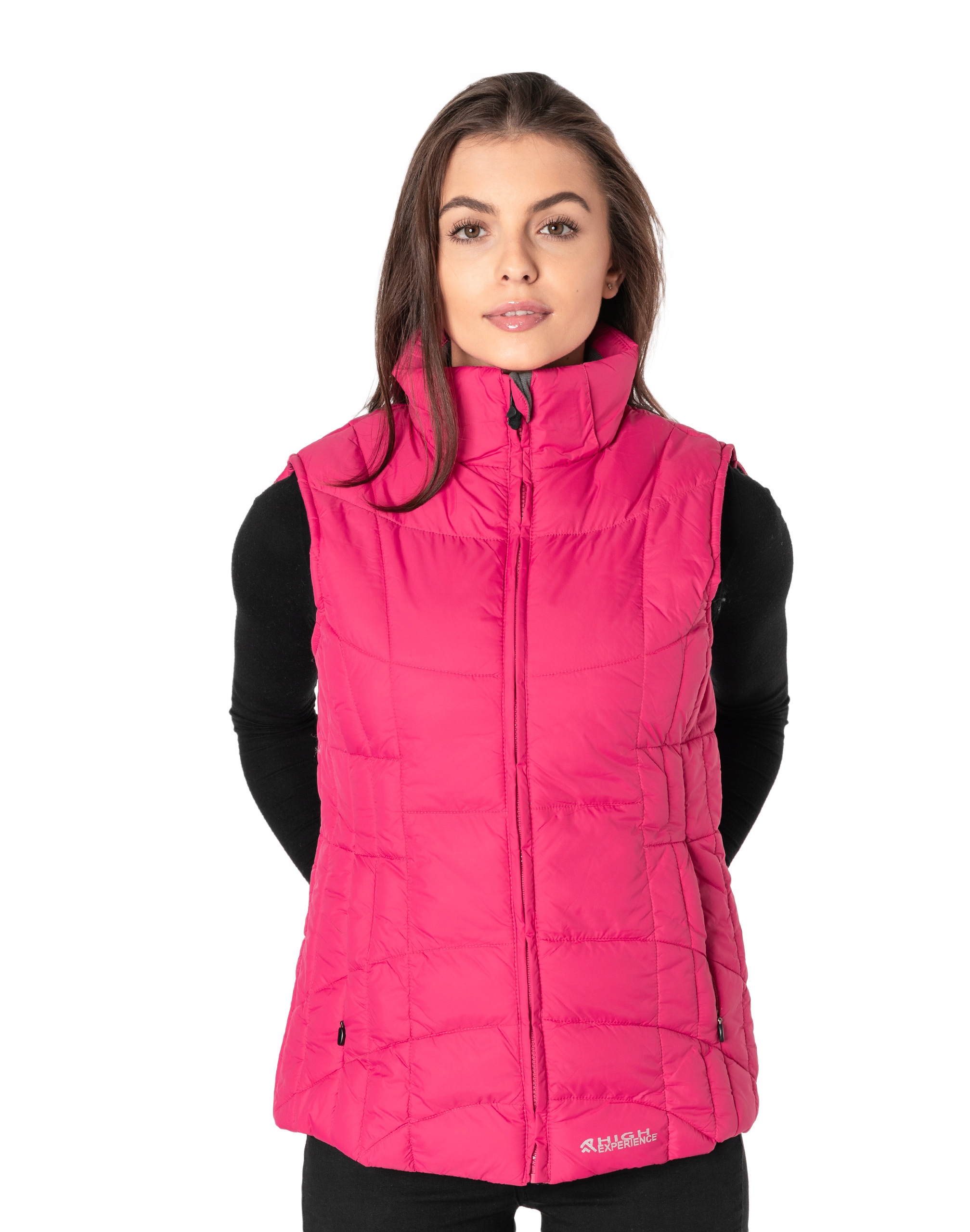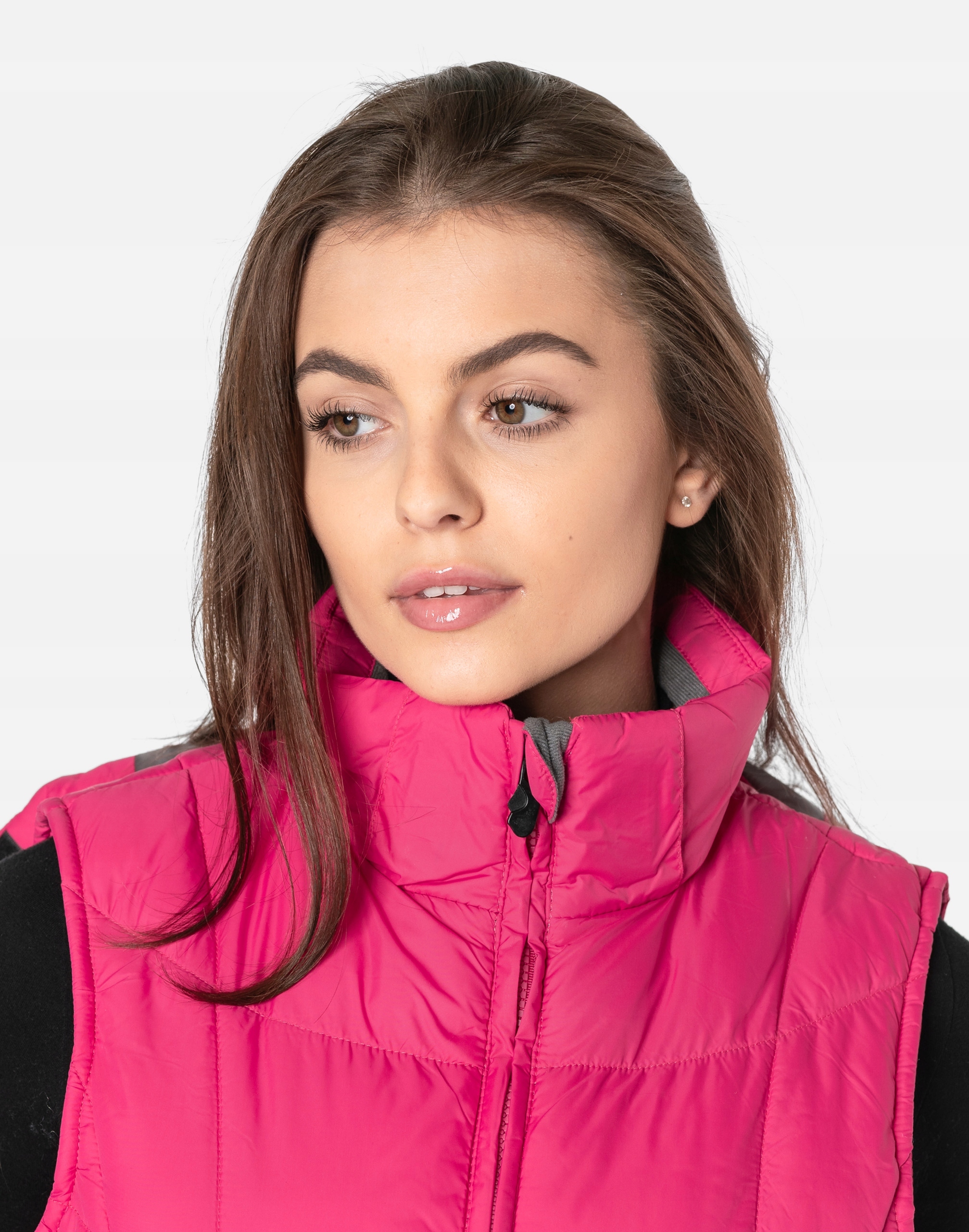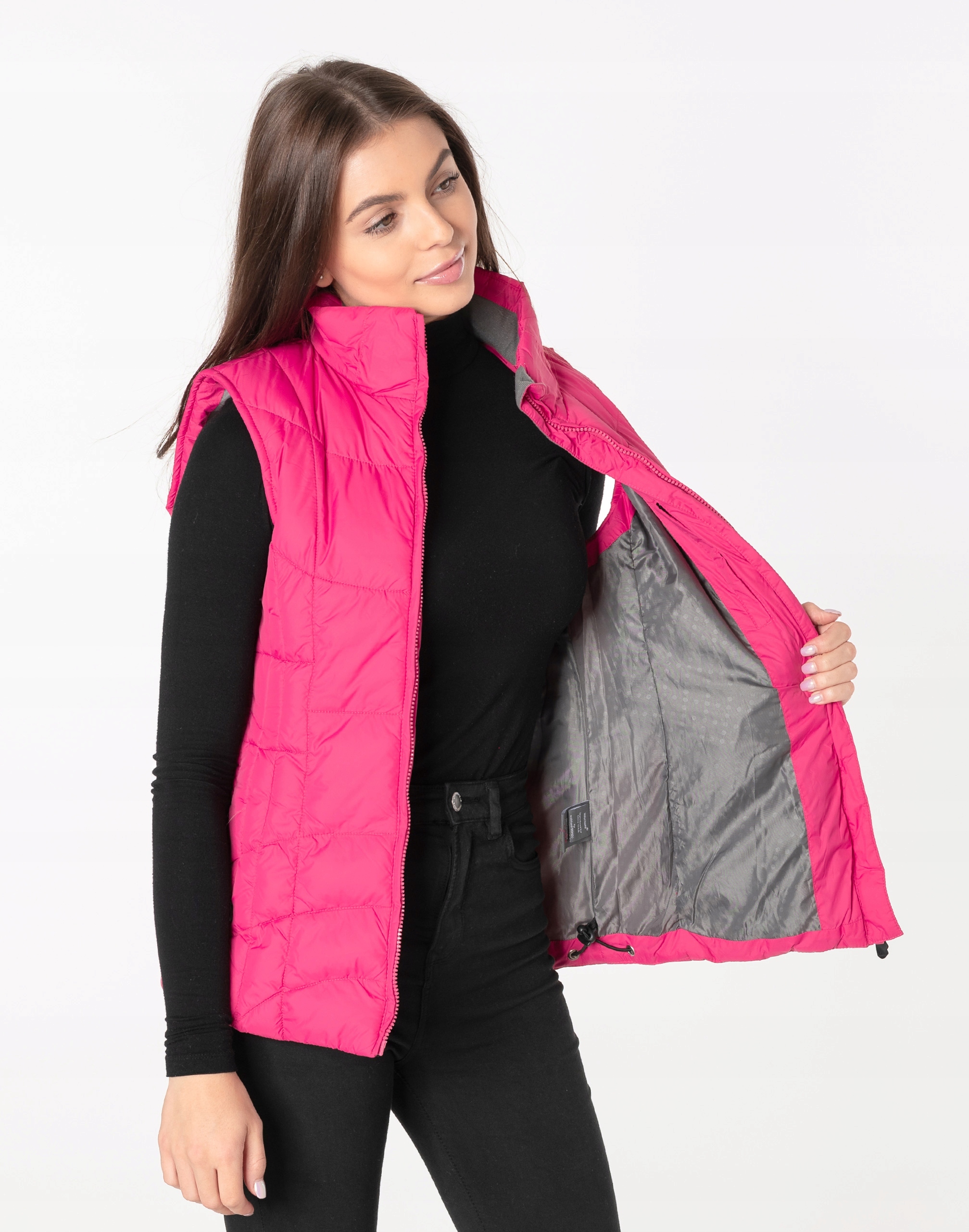 Kamizelka jest wyjątkowo ciepła bo ocieplona w całości puchem syntetycznym. Materiał zewnętrzny jest wiatroszczelny (WINDPROOF maximum ), wodoodporny (WATERPROOF 20000mm watercolumn ) i oddychający (BREATHABLE 20000g/m2/24h). Modny krój pikowanych paneli z pionowymi przeszyciami na bokach powoduje optyczne wyszczuplenie damskiej sylwetki. Talia zgrabnie podkreślona, doskonale wyprofilowana konstrukcja prezentowana obecnie szeroko na modowych blogach.