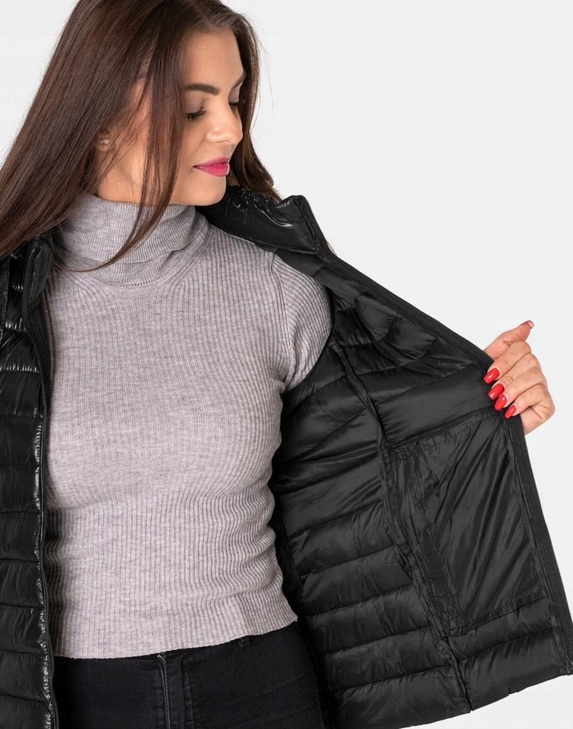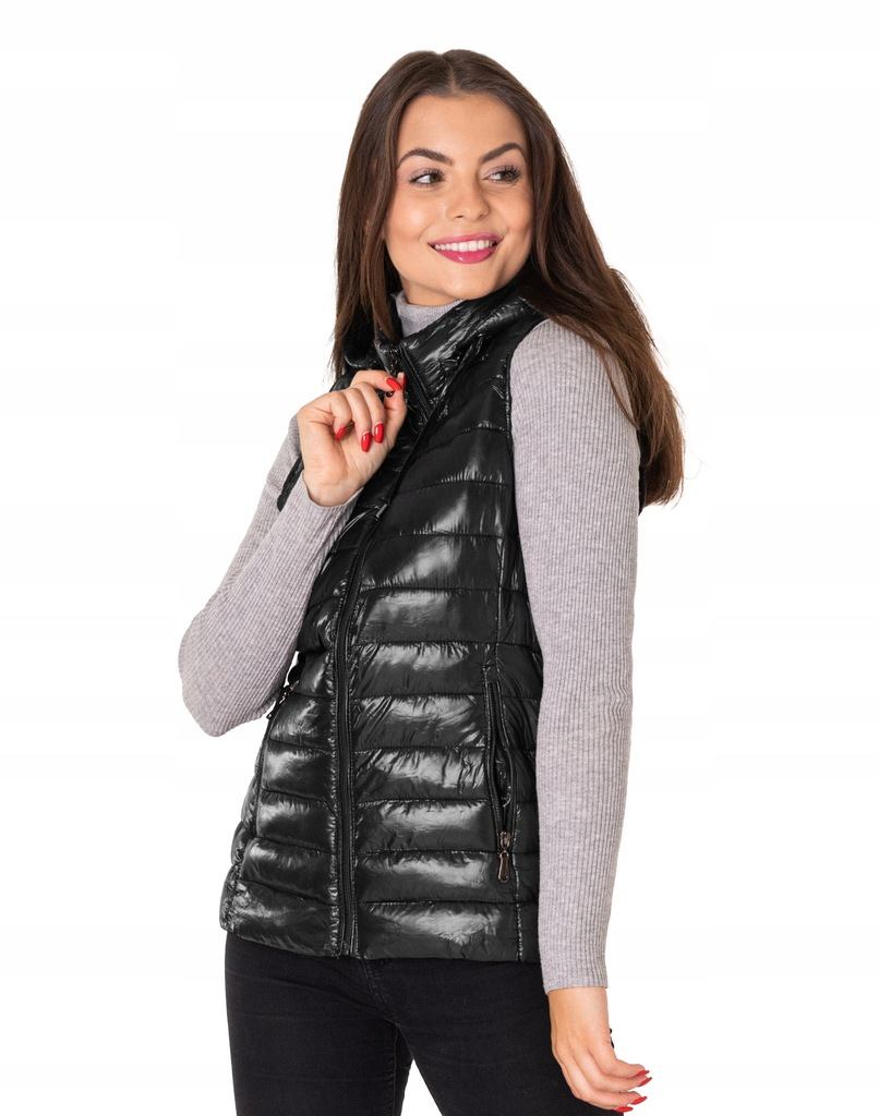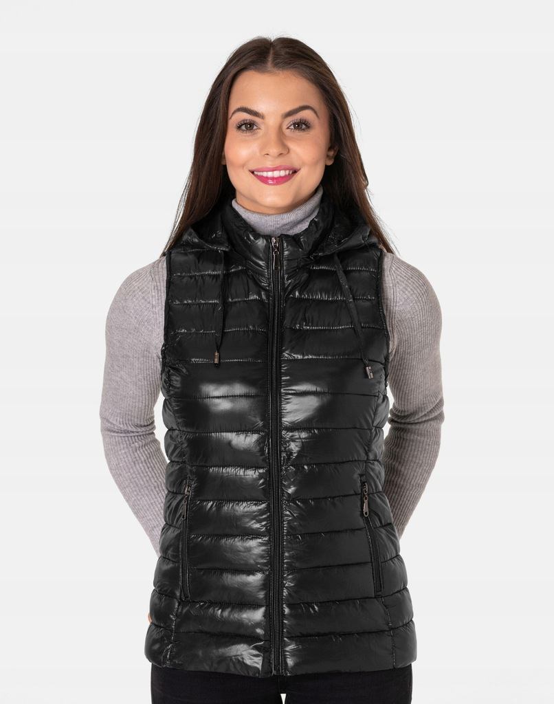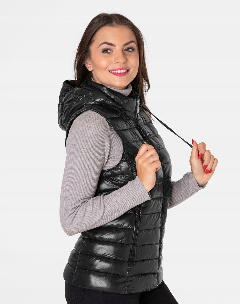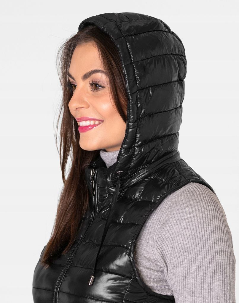 Ciepła Puchowa Kamizelka Damska Ocieplona Bezrękawnik z Kapturem 9138-1 L
