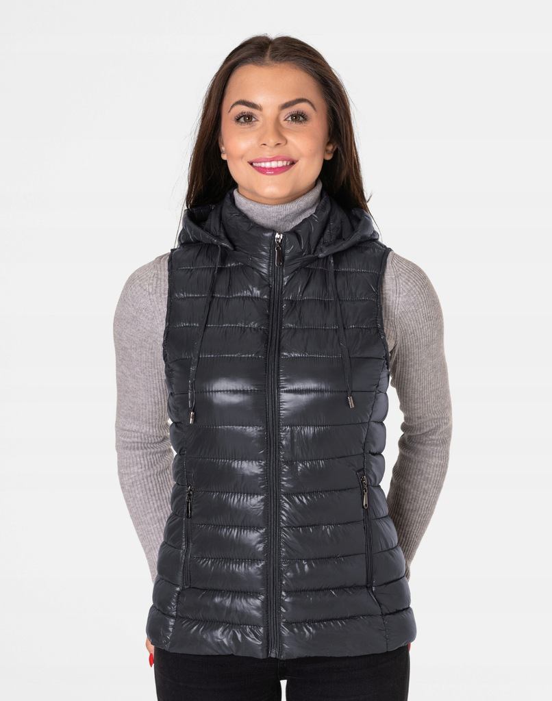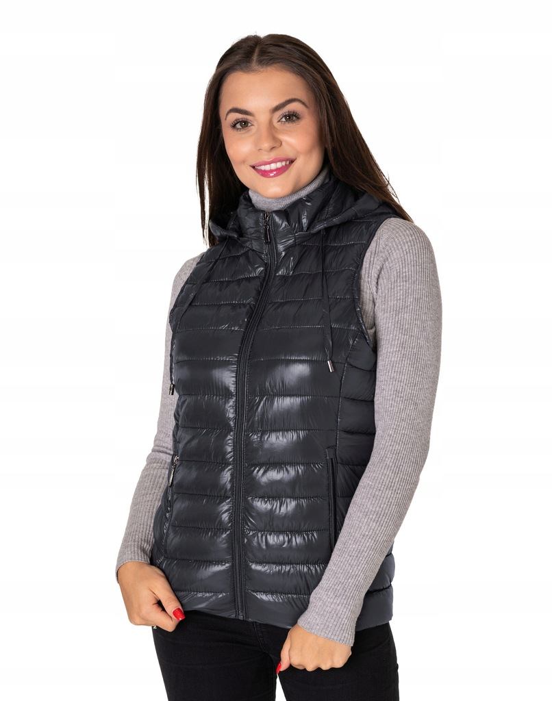 Ciepła Puchowa Kamizelka Damska Ocieplona Bezrękawnik z Kapturem 9138-2 M